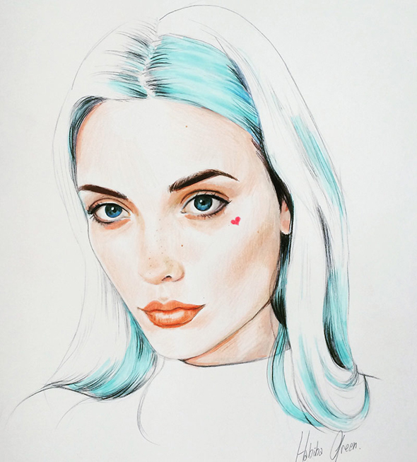 Habiba Bouzaoui, aka Habiba Green, è una giovane illustratrice di Santa Cruz de Tenerife, nelle Isole Canarie, che attualmente vive e lavora a Londra. Fin dalla più tenera infanzia dimostra un grande interesse per l’illustrazione e le tecniche pittoriche, come quella ad olio. Ha studiato grafica pubblicitaria e, dopo aver completato i suoi studi, ha cominciato a sviluppare il suo lavoro professionale in una vasta gamma di discipline: dipinti murali, cartelli pubblicitari, fumetti, ecc.