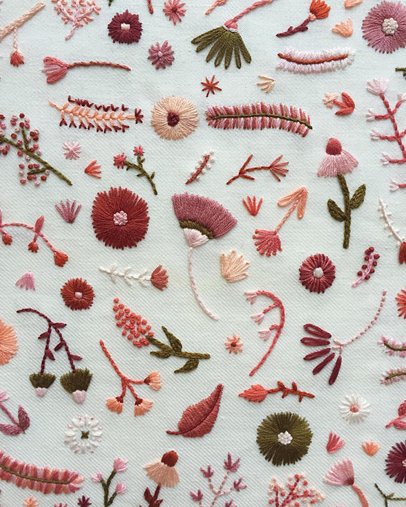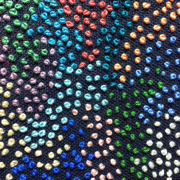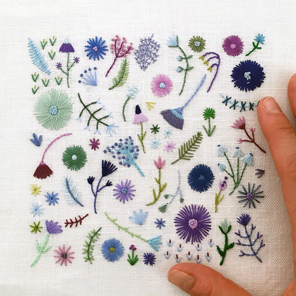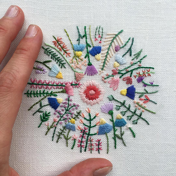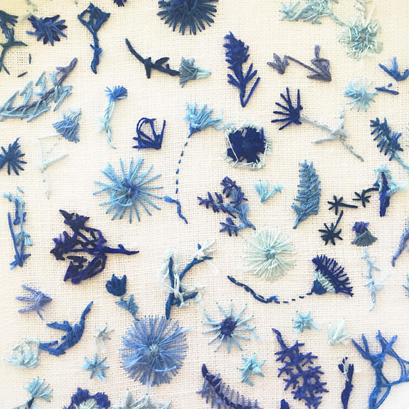Ispirati dalla natura e dai fiori, i suoi pattern botanici sono una delizia di colori e forme, semplificate e sintetizzate con un irresistibile grazia infantile, dovuta alla peculiarità del mezzo, l‘ago e il filo appunto. Nato come un hobby notturno, il “piccolo cactus” è cresciuto fino a diventare una robusta pianta, ramificata in quadretti personalizzati, cuscini, spillette e biglietti di auguri. Il tombolo è vivo e lotta insieme a noi.