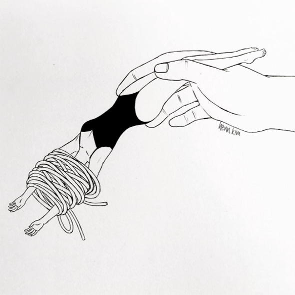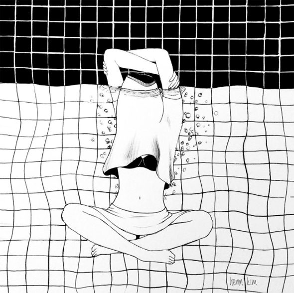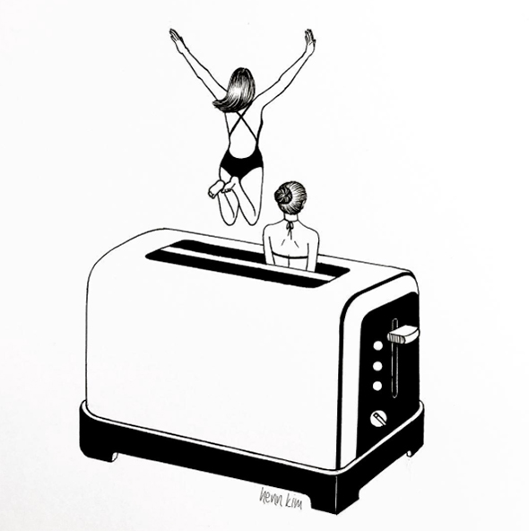 Dopo le spiazzanti rappresentazioni del duo Mrzyk & Moriceau oggi vi presento un’altra artista che ha fatto del surreale la sua unica ragione creativa. Henn Kim, le cui informazioni biografiche si riducono alla descrizione “heavy sleeper, happy drawer“, riportata sul suo shop online, disegna esclusivamente a mano con inchiostro nero, traendo probabilmente ispirazione da immagini e informazioni che le pervengono dal mondo esterno.