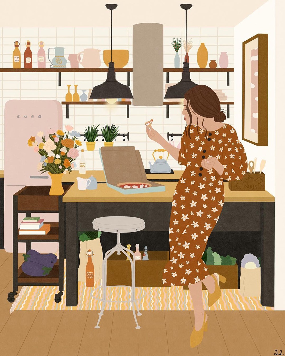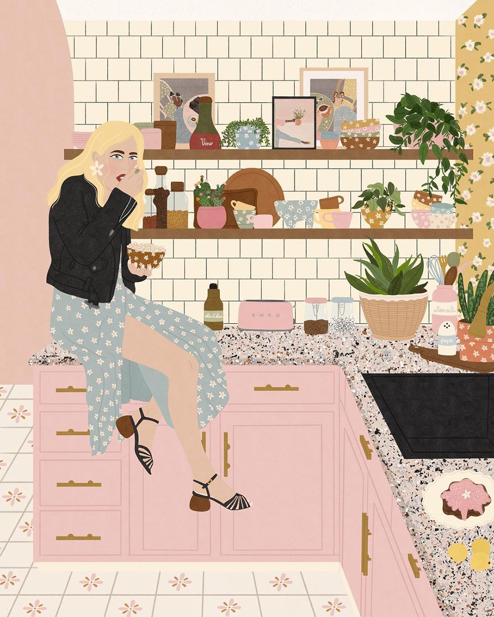 Ilenia Zito è una giovane illustratrice italiana nata e cresciuta sul mare, a Palermo, che ama le tinte pastello e le sfumature delicate e romantiche. I suoi lavori esplorano la sfera intima e pura dei sentimenti, soffermandosi su ogni piccolo tassello della quotidianità, che sia esso condiviso con qualcuno di importante o tranquillamente goduto in solitudine tra le confortevoli mura domestiche.