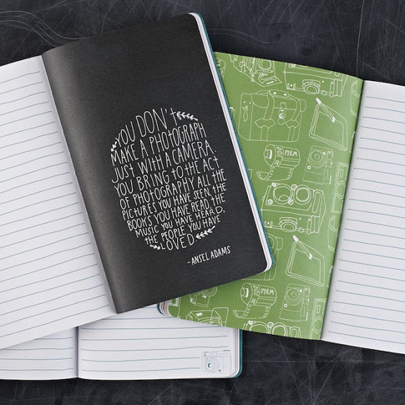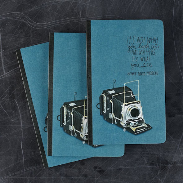 L’illustratrice e designer di San Francisco Lisa Congdon ha realizzato questo colorato taccuino inserendo disegni di vecchie macchine fotografiche accompagnati da frasi celebri ed aforismi sulla fotografia. Torneremo presto a parlare di lei!