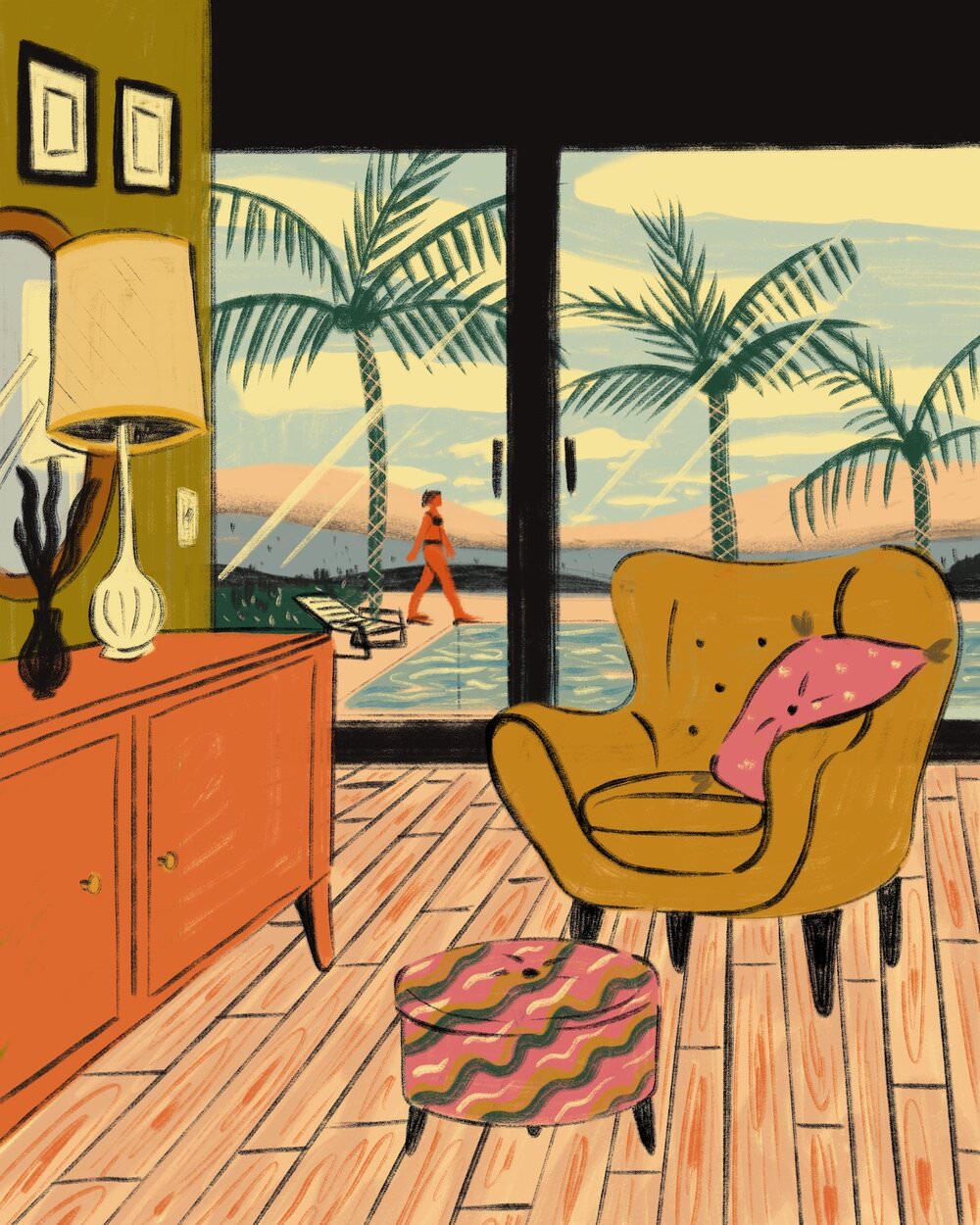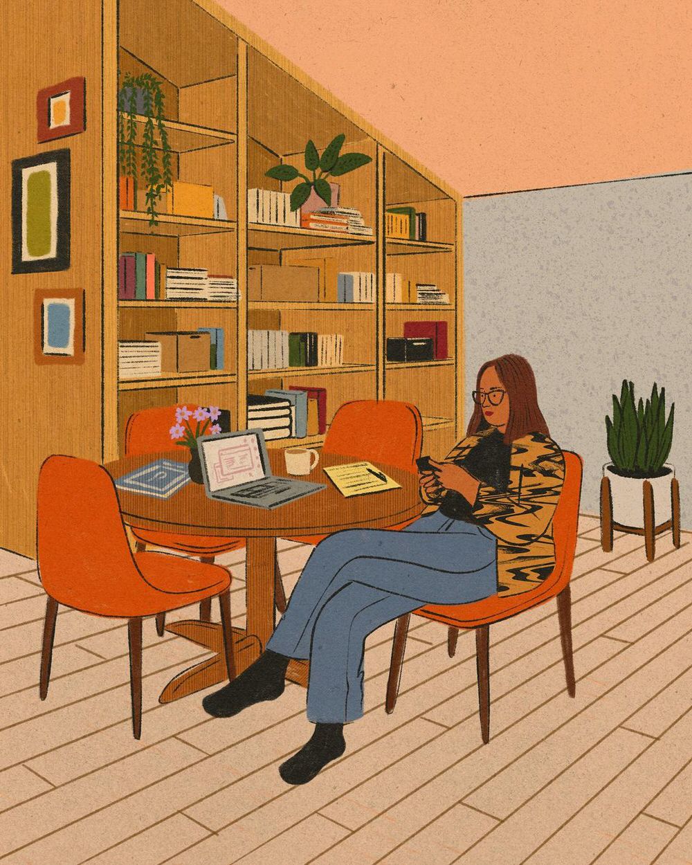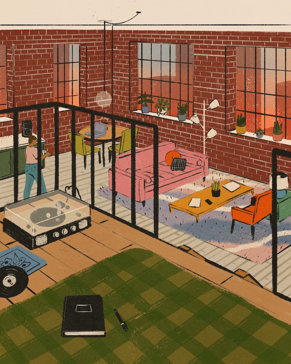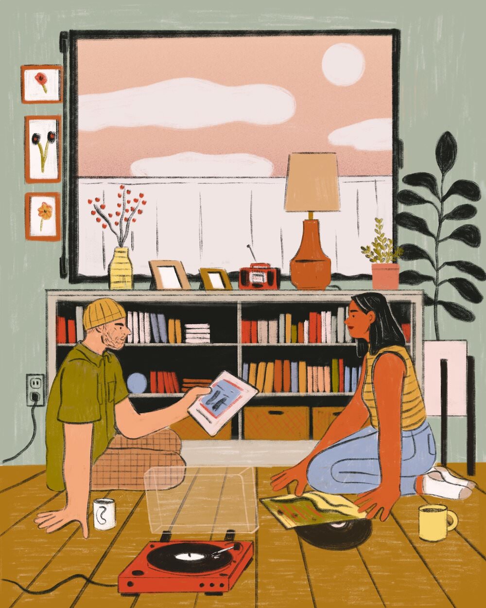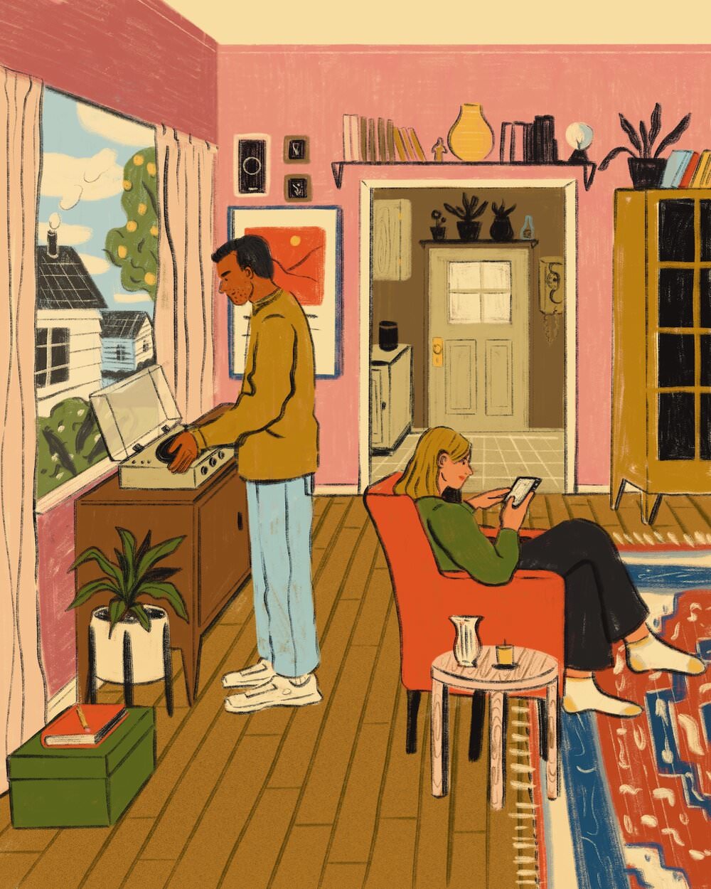 Le illustrazioni, per lo più digitali ma anche a matita, inchiostro e acrilico, sono fatte di pennellate morbide e colori caldi, ricche di particolari. Le serie dedicate agli interni delle case riportano con estrema precisione ambienti che ci sembra quasi di riconoscere, così come i protagonisti che li abitano, ed evocano momenti di vita vissuta in cui è facile immedesimarsi. Prendetevi una breve pausa per fare un giro su suo Instagram e sul sito, che ospita anche uno shop in cui è possibile acquistare le sue stampe.