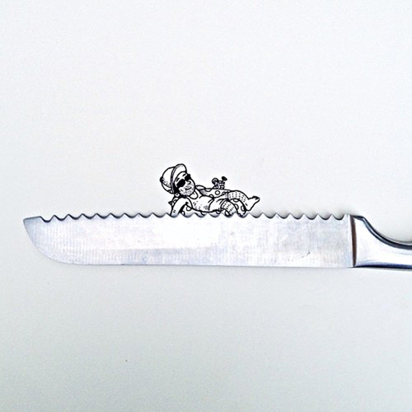 Che spasso nuotare sui “dentini” del coltello! Gli oggetti quotidiani non diventano soltanto illustrazioni surreali ma anche personaggi di successo grazie alla fantasia dell’artista americano Alex Solis. Chi avrebbe mai immaginato che lo smartphone, il “telefono intelligente”, sarebbe diventato un docente universitario?