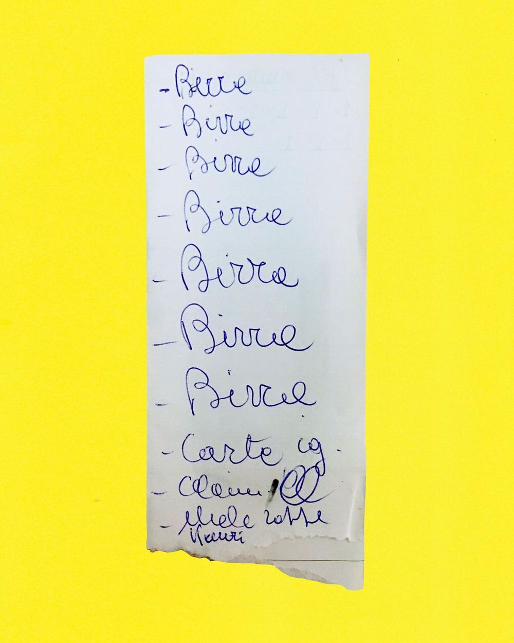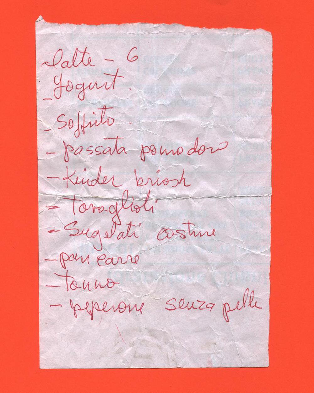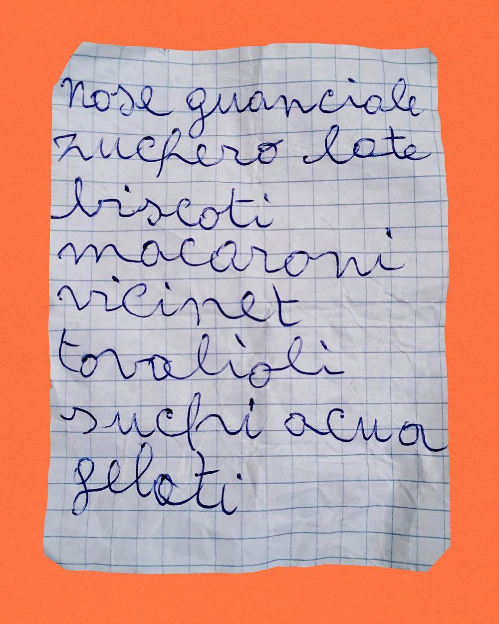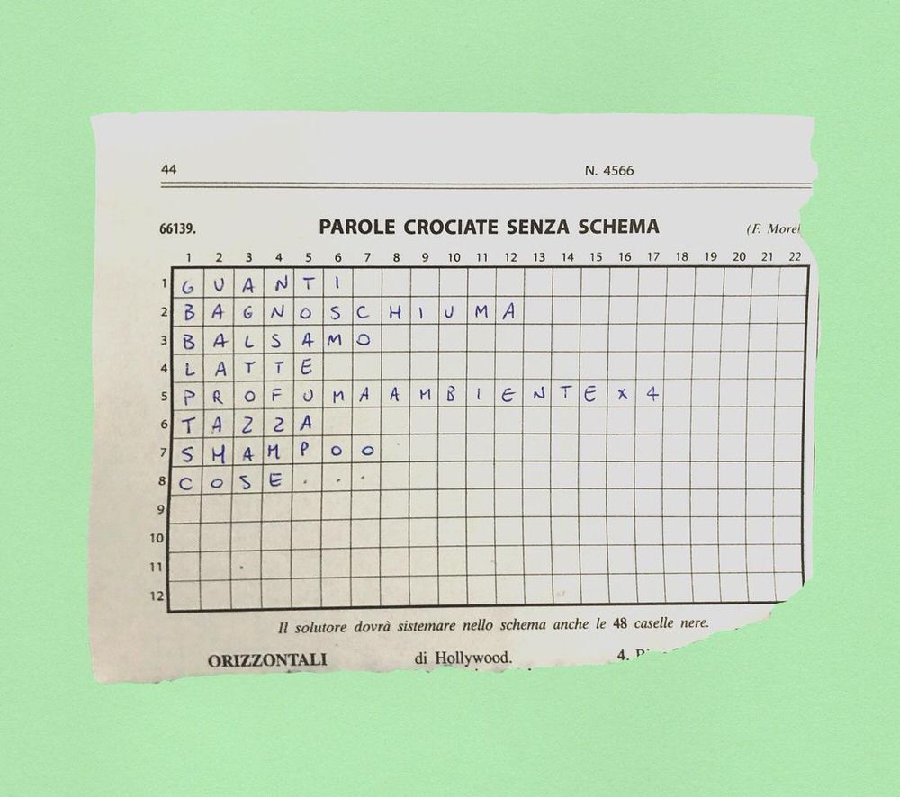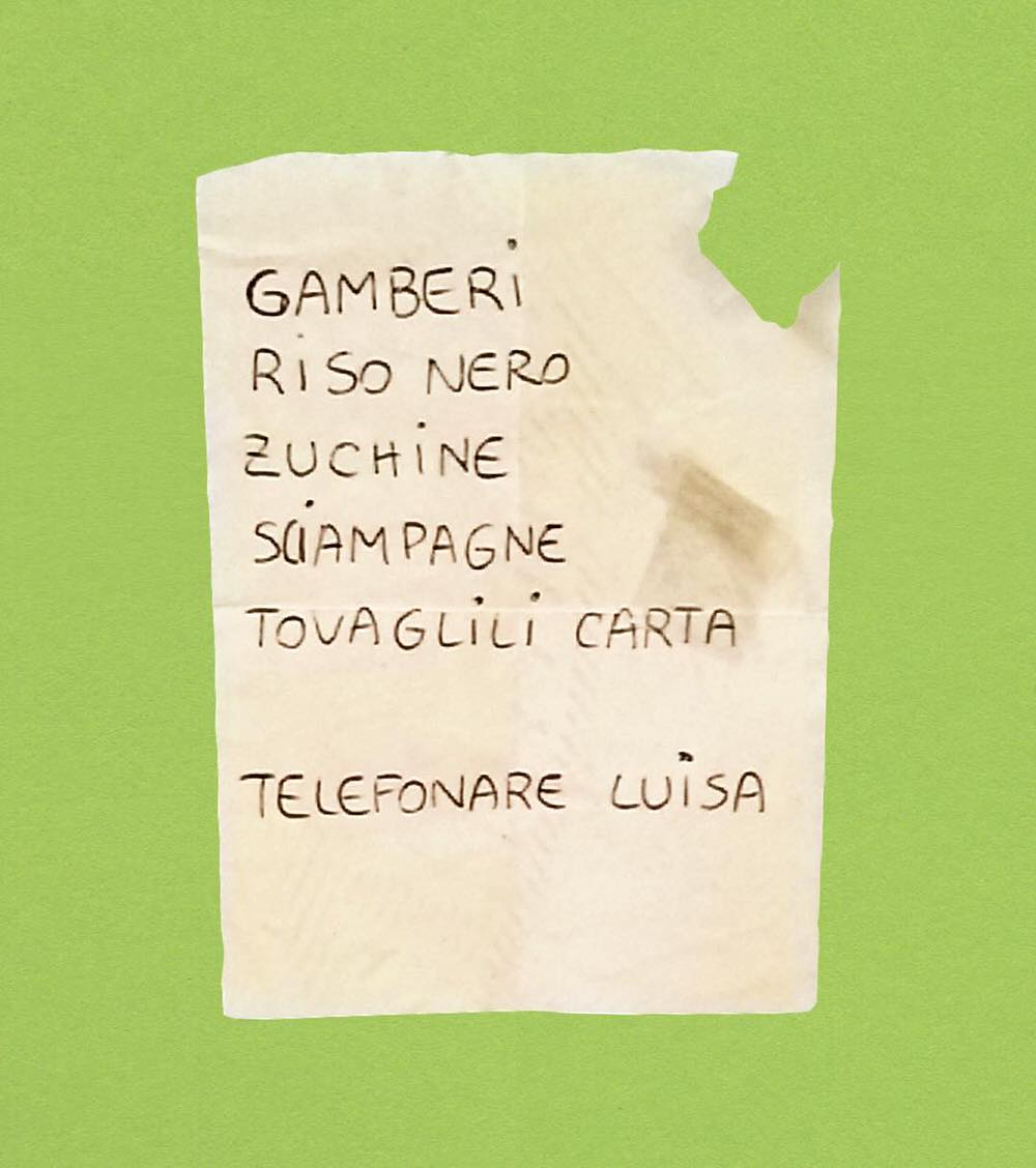 Durante questa ricerca ci sono stati tanti momenti che mi hanno fatto capire, come suggeriva Umberto Eco, che le liste della spesa non solo soltanto delle cartacce che scriviamo per noi stessi, che perdono valore una volta finiti gli acquisti, ma sono dei veri e propri contenitori di storie. Ogni volta che andavo a fare la spesa trovavo questi foglietti da cui spuntavano delle calligrafie un po’ sbilenche, e mi incuriosivano. Ho iniziato a raccoglierne una, due, tre, quattro, e a quel punto mi sono reso conto di avere in mano una sorta di fotografia di quello che c’è nella