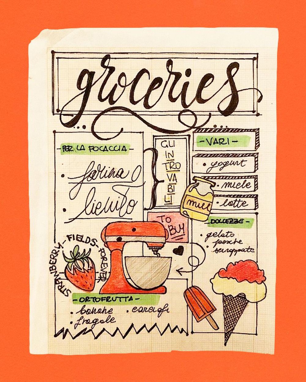 Insta Della Spesa. L’esigenza di ideare e raccontare è il suo pane quotidiano, ed è forse anche per questo che, tra vari traslochi in giro per l’Italia, ha sempre collezionato