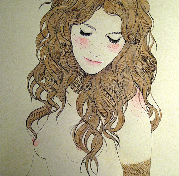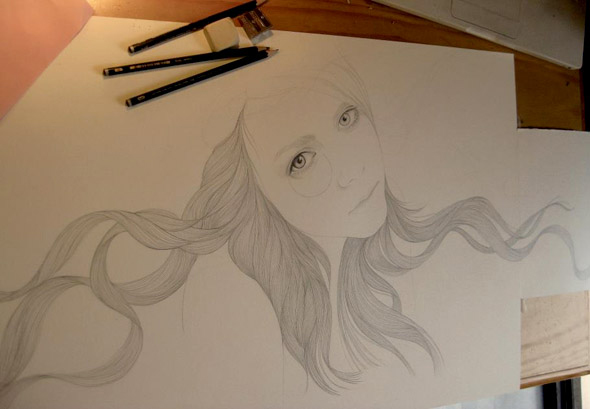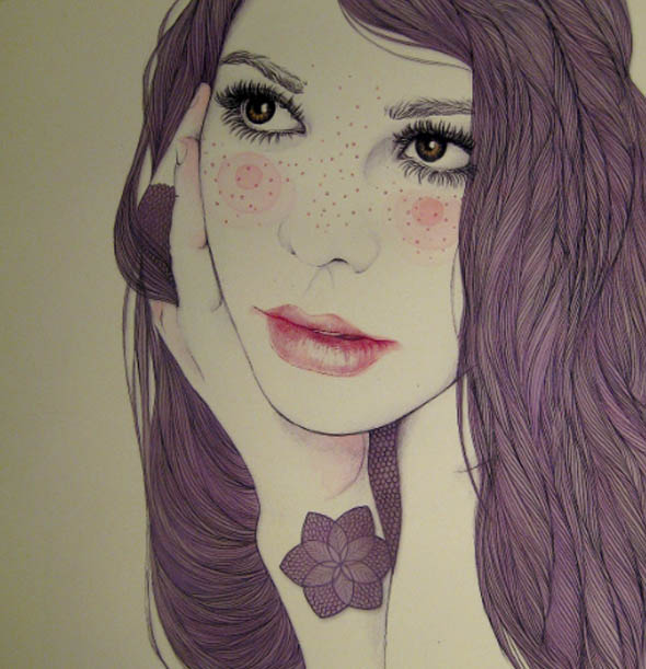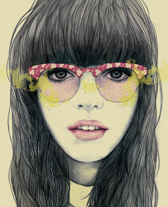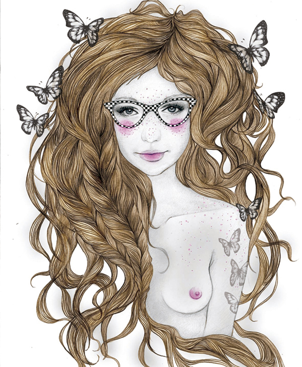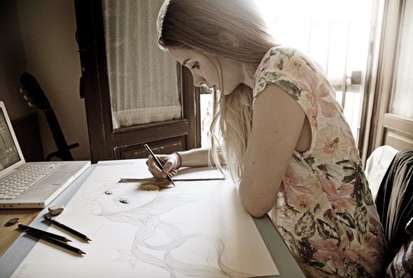 Trovo l’ispirazione in tutto ciò che mi circonda. Il lavoro di altri illustratori, pittori, fotografi, sulle riviste di moda, su internet, ecc. Di solito disegno partendo da fotografie. Ho la grande fortuna di avere una sorella fotografa e questo mi aiuta molto nello scegliere le immagini che voglio disegnare. Le ragazze delle mie illustrazioni (almeno per la maggior parte) sono amiche o persone che conosco, e questo mi è di grande aiuto. Mi piace vedere come interagiscono e partecipano al processo di creazione. Quando si vedono riflesse sulla carta e si piacciono è una delle mie maggiori soddisfazioni.