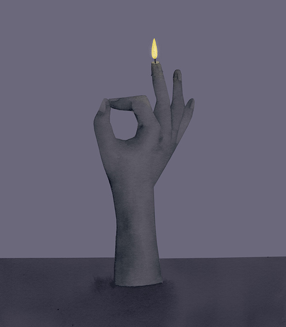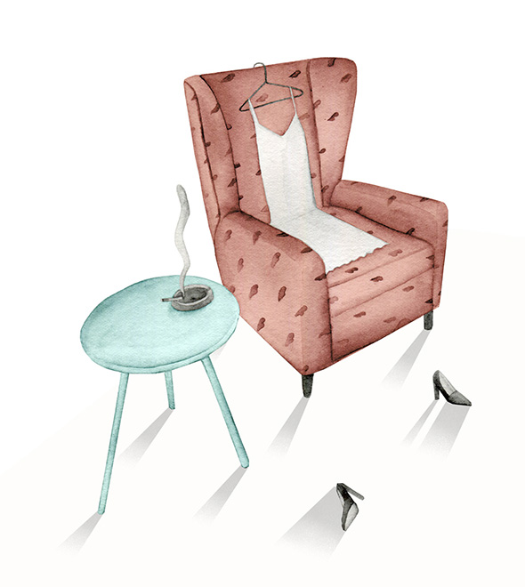 Le illustrazioni di Laura Angelucci sono visioni enigmatiche, brandelli di un sogno ad occhi aperti, inquadrature di un film che racconta le allucinazioni del suo protagonista.