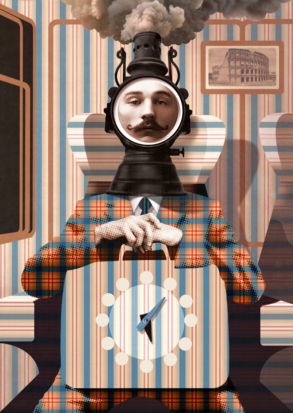 Mi trovo maggiormente a mio agio se il tema è il più generale possibile, poiché non sono molto bravo ad illustrare un concetto preciso, anche se a volte qualcosa di interessante è emerso, sempre comunque con una certa fatica. Sono più interessato ad una ricerca sulla forma; il che comunque non esclude che questa trasmetta un concetto. In ogni caso penso che i miei lavori più interessanti siano quelli più ambigui e aperti a diverse interpretazioni. Immagino sia evidente, guardando le mie illustrazioni, che sono concentrato anche sull’aspetto decorativo dell’illustrazione. Il mondo che mi interessa è il passato, mi piace rivisitarlo. Mi affascinano alcune epoche in particolare, soprattutto i primi decenni del Novecento, ma non solo. Ho sempre ammirato il lavoro di Fornasetti: lo considero un vero maestro per ironia e pessimo “buon gusto” come amava dire lui stesso.