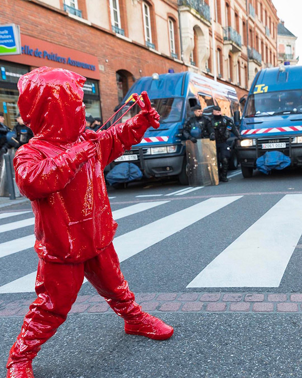 Le opere dell’artista di Tolosa James Colomina, a volte ironiche a volte inquietanti, sono una reazione alle ipocrisie della società e vogliono scuotere la nostra indifferenza. Sculture ma soprattutto installazioni urbane, nelle quali queste figure acquistano teatralità e il loro messaggio esplode in tutta la sua forza.