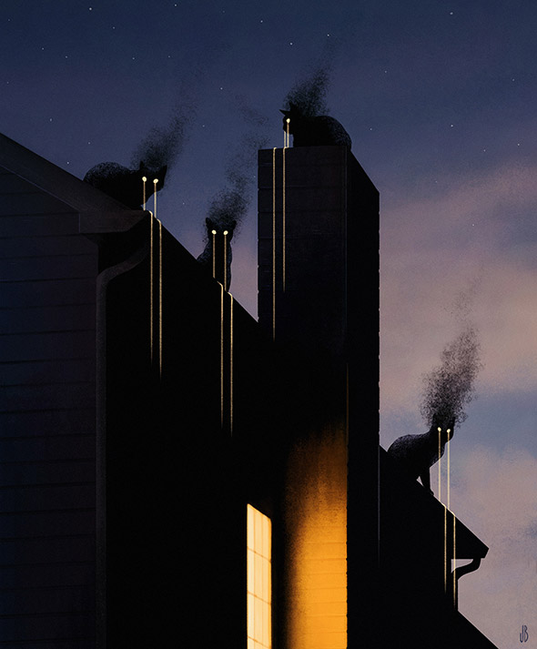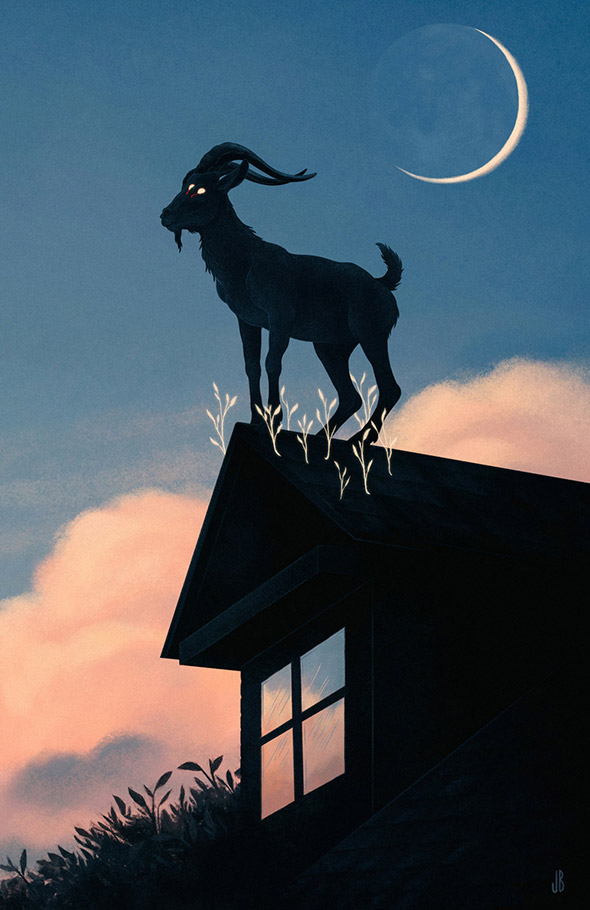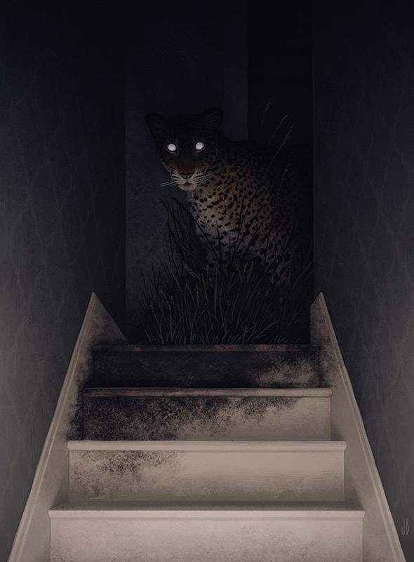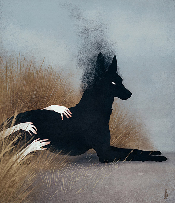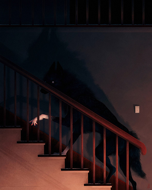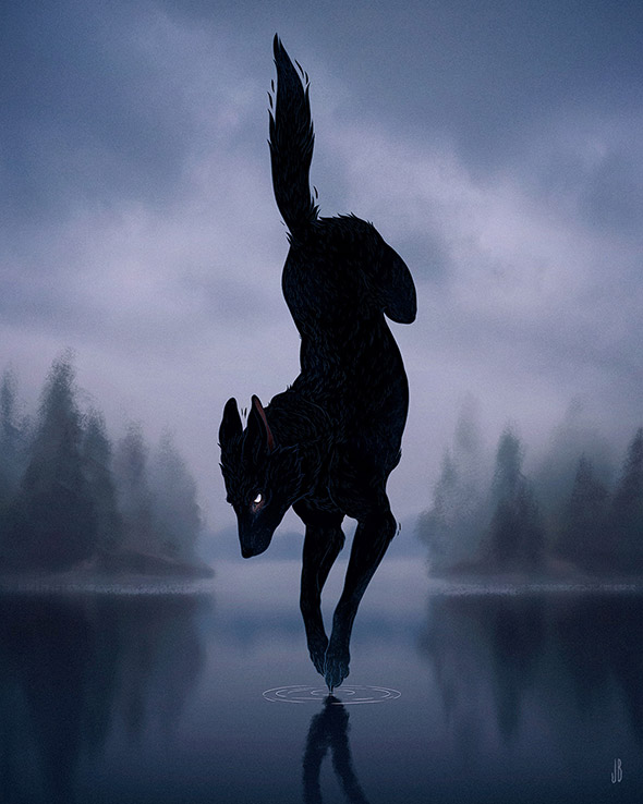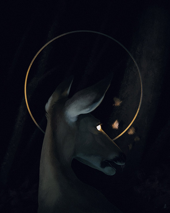 Sono le creature enigmatiche e inquietanti di Jenna Barton, aka Dappermouth. L’ambientazione, spesso notturna, amplifica la suggestione delle loro pose statuarie, quasi ieratiche, e ricorda gli incubi dipinti da Johann Heinrich Füssli. La loro apparizione si accompagna talvolta a fumi, nebbie e mutazioni antropomorfe che sottendono il nostro legame con la natura selvaggia, nascosta nelle pieghe dell’inconscio. Un tema che accompagna anche il lavoro di Alfred Basha, di cui vi ho già parlato qui.