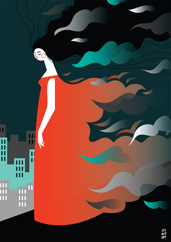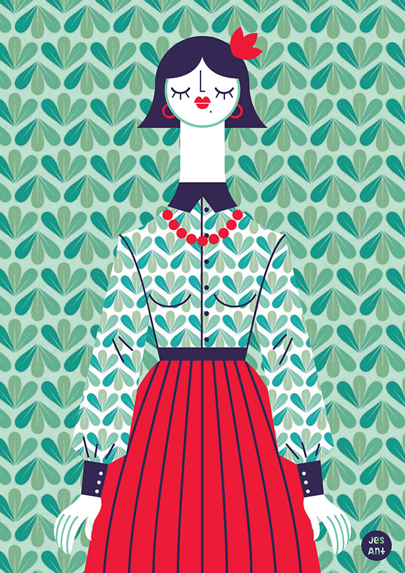 Jessica Antonini, aka JesAnt, è un’illustratrice freelance di Foligno che si è diplomata alla Scuola internazionale di Comics di Firenze e ha conseguito un Master in Toy Design all’Istituto Italiano di Design di Milano. Le donne sono le principali protagoniste delle sue illustrazioni, che realizza a colori vivaci con una stilizzazione geometrica quasi cubista, ingentilita da note art déco. Questa sua caratteristica l’ha portata a privilegiare l’utilizzo della grafica digitale e dei programmi di elaborazione vettoriale delle immagini.