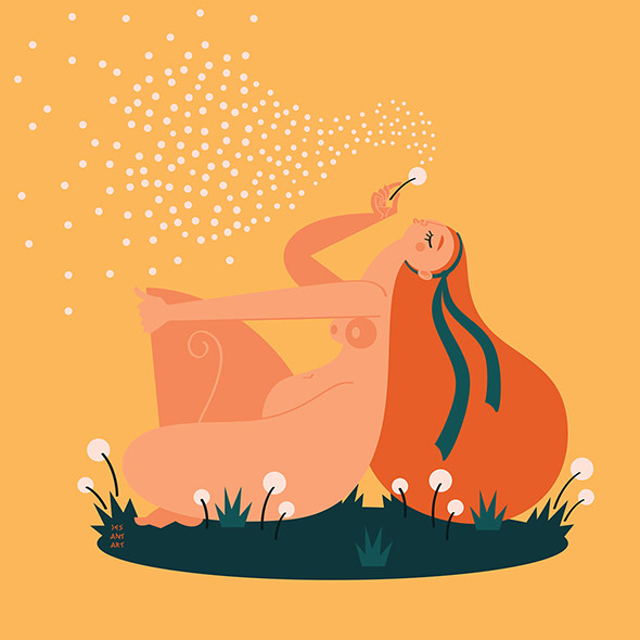 La sua sensibilità si esprime con la stessa sicurezza sia nell’illustrazione per l’infanzia che nei lavori editoriali rivolti ad un pubblico adulto. Figure mitologiche, personaggi storici o celebri dipinti vengono reinterpretati attraverso il suo sguardo personale, che mescola candore, humour e allegria. Anche nell’header che ha disegnato per i nostri lettori è un personaggio femminile a strizzare l’occhio all’estate, scaldandoci il cuore mentre siamo ancora stretti nella gelida morsa dell’inverno.