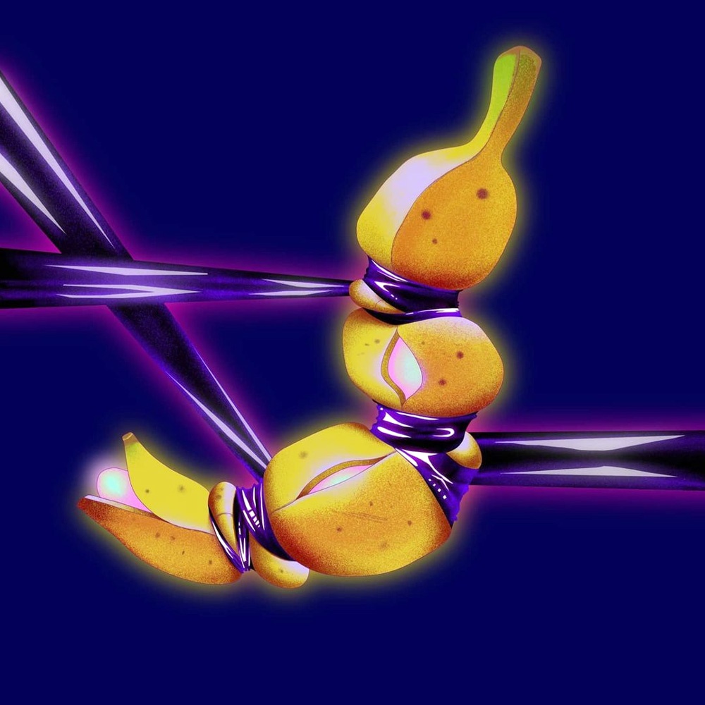 Tra le sue illustrazioni più bizzarre ci sono quelle che hanno come protagonista la frutta, sottoposta alla pratica dello shibari o kinbaku, disciplina giapponese che consiste nel legare una persona al fine di procurarle piacere fisico, derivata a sua volta dalle tecniche dell’hojojutsu, l’arte marziale nata per immobilizzare i prigionieri di guerra.