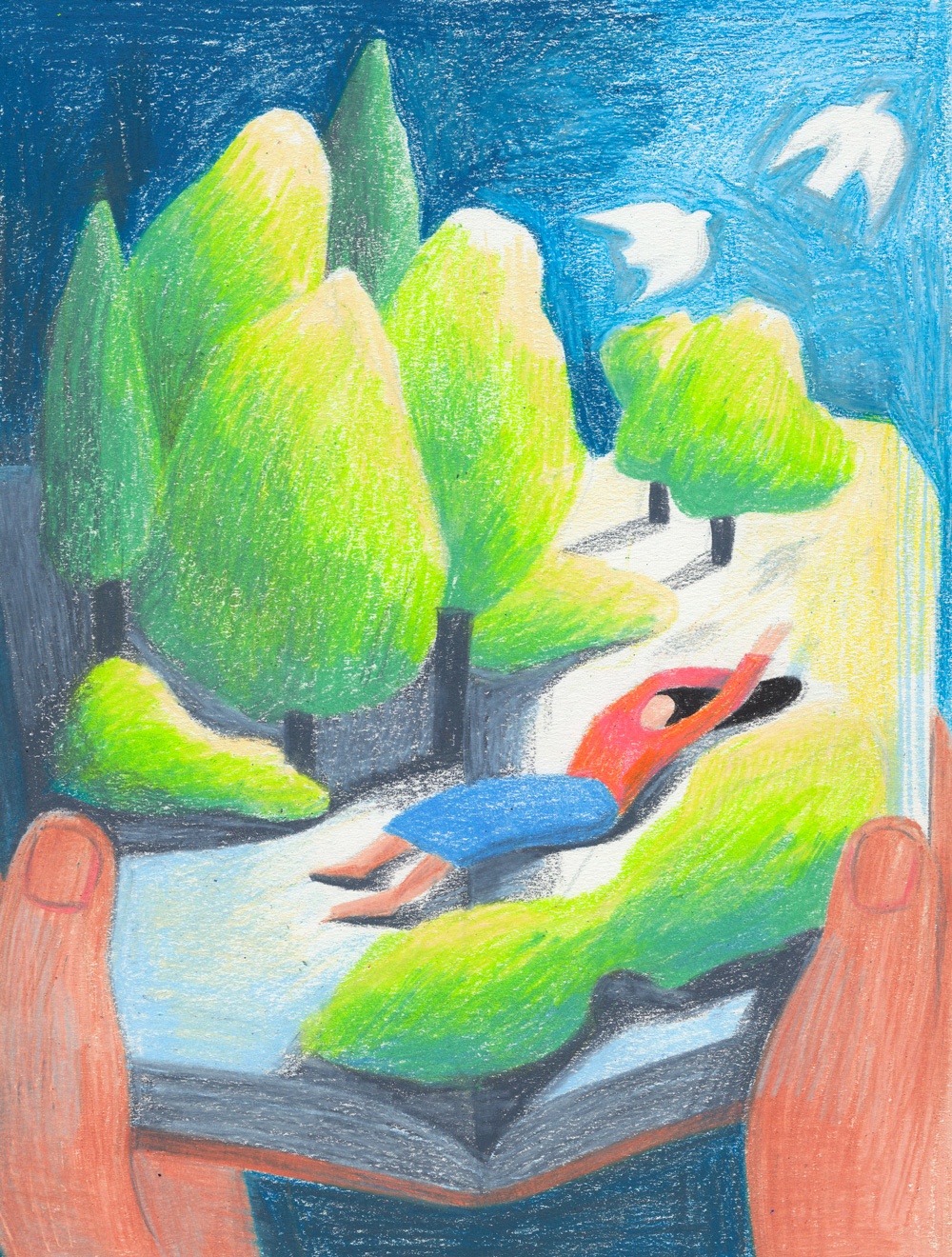 Jiayue Li disegna sia con tecnica tradizionale che in digitale, avvalendosi di pennelli che simulano gli effetti del pastello applicato sulla carta ruvida. La formazione come graphic designer l’ha aiutata a migliorare l’aspetto compositivo delle illustrazioni, che hanno assonometrie perfette e un taglio spiccatamente grafico.