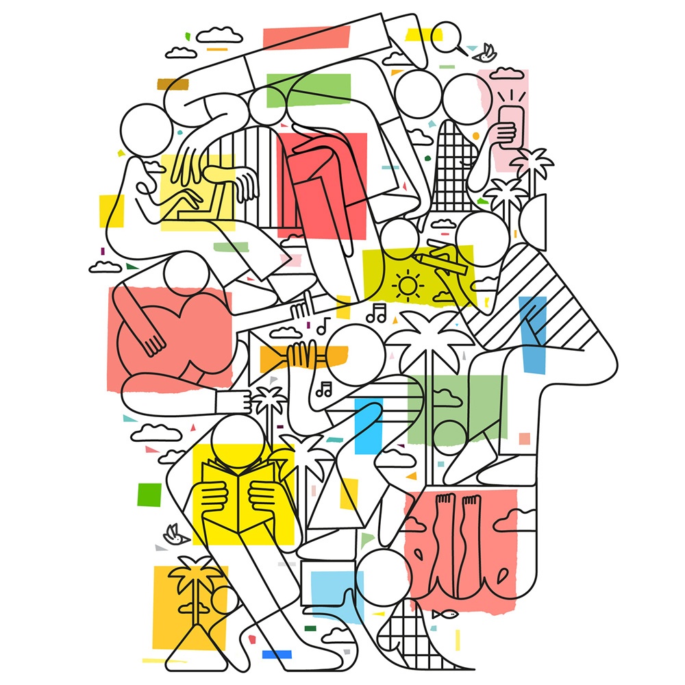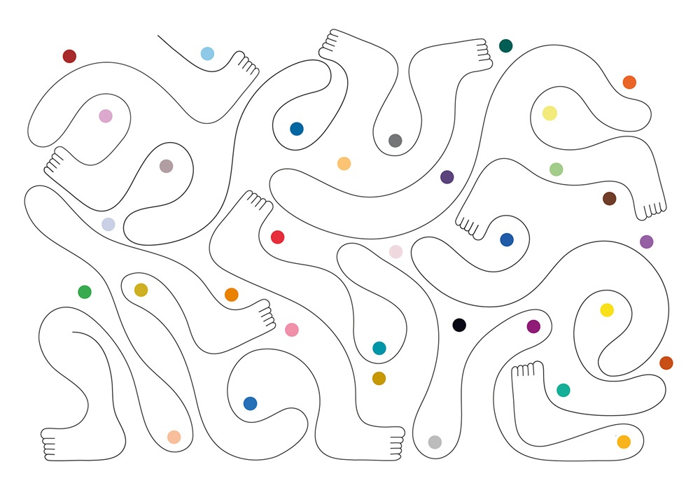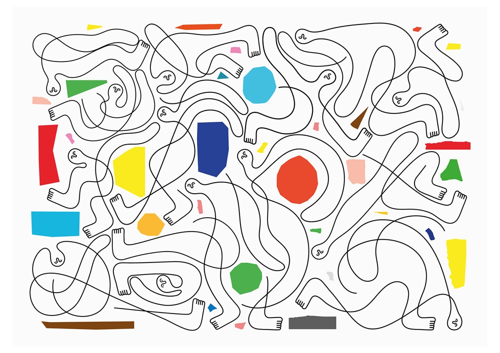 Il 2020 ed il 2021 per me sono stati una valanga. Si è mosso un universo intero di commissioni. Sono stanchissimo e felice. Sto lavorando ad un progetto gigante in America, tipo 100 disegni, un altro bello tosto in Canada e fortunatamente tanti altri progetti che mi lasciano libero di essere me stesso. Il mio linguaggio in questo momento viene tanto utilizzato per fare branding. E torniamo al punto di partenza “uno che usa l’illustrazione per distinguersi nel design” 🙂 La cosa su cui sto cercando di lavorare, ma sono sempre in ritardo, è una mostra dove stacco un po’ dai lavori commissionati e cerco qualche nuovo sbaglio a cui attaccarmi 🙂 C’è sempre tanto bisogno di provare cose nuove di innamorarsi di nuovi difetti. Ho un bimbo di 4 anni, vedo come parla con i colori facendogli fare battaglie, come gioca… ecco sto lavorando tanto sul non smettere mai di giocare.