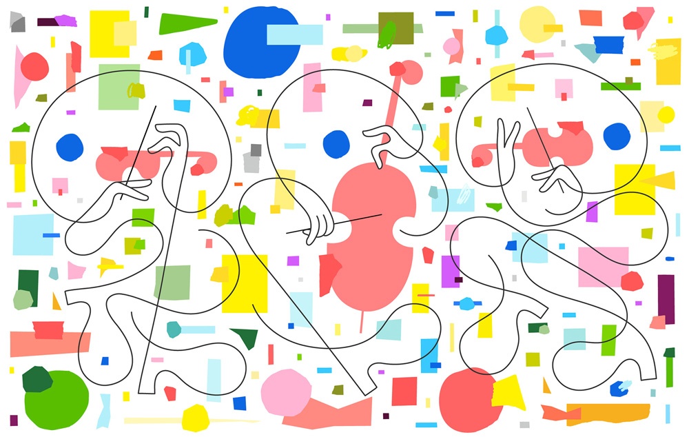 Linea e colore nei tuoi lavori hanno un dialogo complementare: la linea racconta e il colore è spesso una forma, astratta o realistica, che fa da contrappunto quasi musicale al “tema” creato dalla linea e non un semplice riempitivo. È un’impressione che corrisponde alle tue intenzioni?