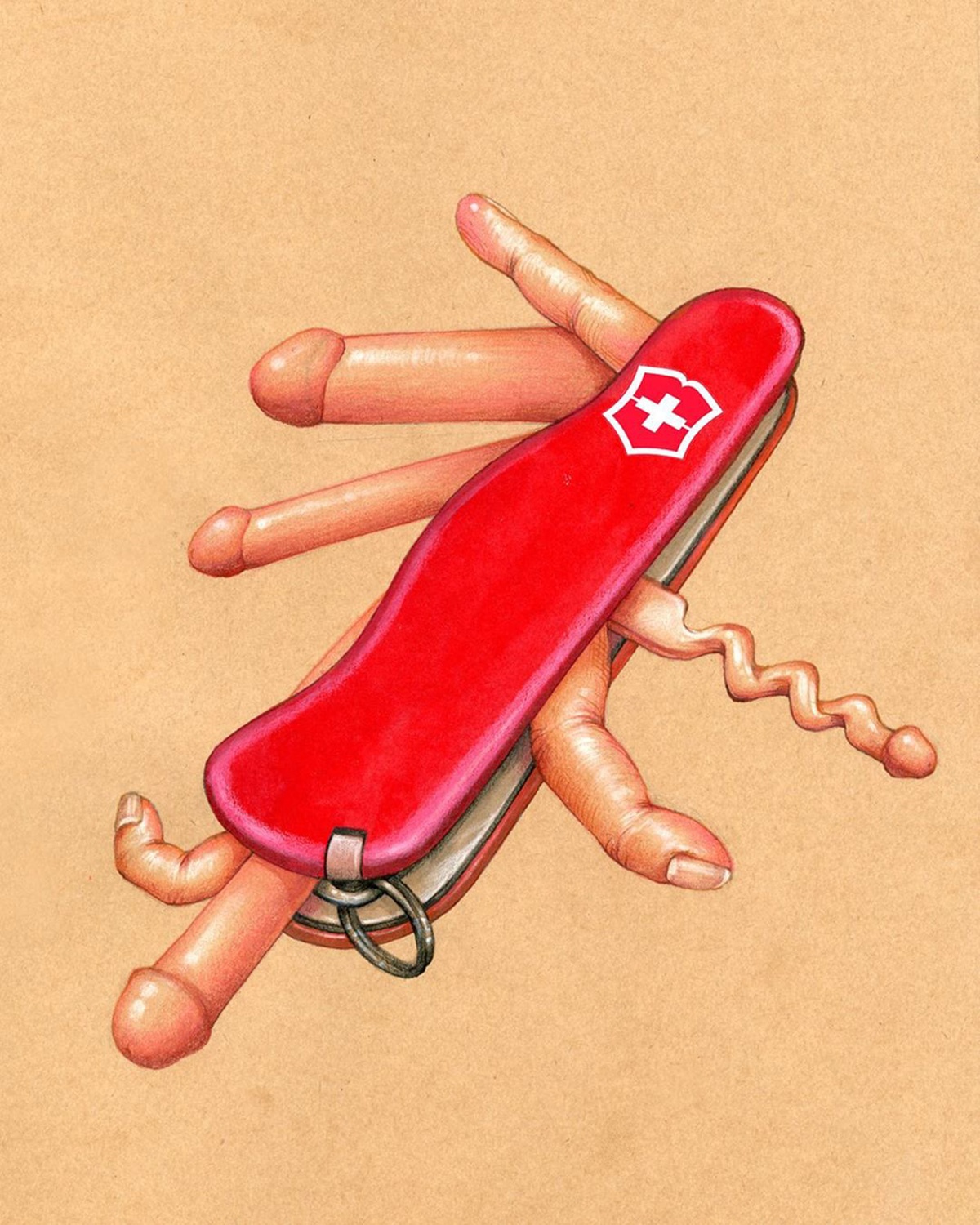 L’intento è quello di far emergere il lato grottesco della sessualità, smontandone al contempo gli stereotipi più radicati. I disegni di Joyce Lee parlano di sesso senza distinzioni di genere, gusti e inclinazioni, facendo crollare i numerosi tabù che ancora oggi – incredibilmente – circondano certe tematiche. Grazie all’ironia e al surrealismo, inoltre, l’artista riesce ad aggirare la censura insensata dei social media, la stessa che lascia circolare liberamente immagini di una violenza inaudita e poi oscura gli artisti per un’immagine che mostra dei capezzoli.