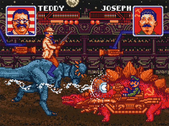 Jude Buffum è un illustratore e designer di talento di Philadelphia. Come clienti vanta il New York Times, GQ, Entertainment Weekly e Newsweek, le sue illustrazioni e i suoi progetti hanno ricevuto riconoscimenti e pubblicazioni a livello internazionale. Il comune, ma interessante, denominatore di molti suoi progetti è il pixel.Enormi pixel formano immagini tra l’assurdo e il geniale: battaglie epiche stile vecchi videogames fra importanti personaggi storici a cavallo di dinosauri, scene di film famosi, istruzioni per produrre ottimo sushi, animali improbabili, minimondi sotto vetro e tanto, tanto altro ancora!