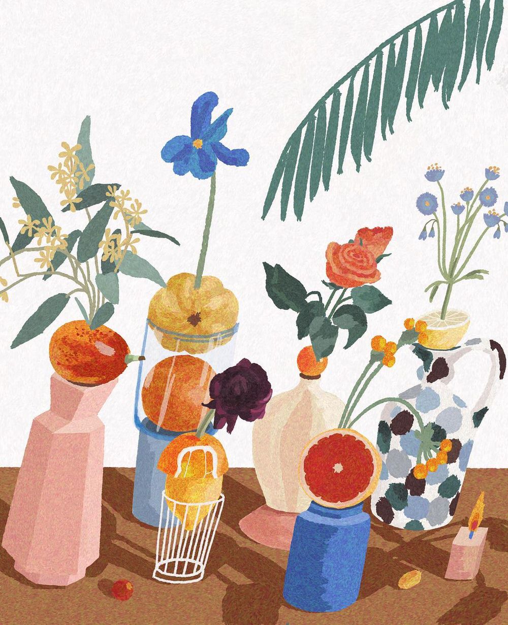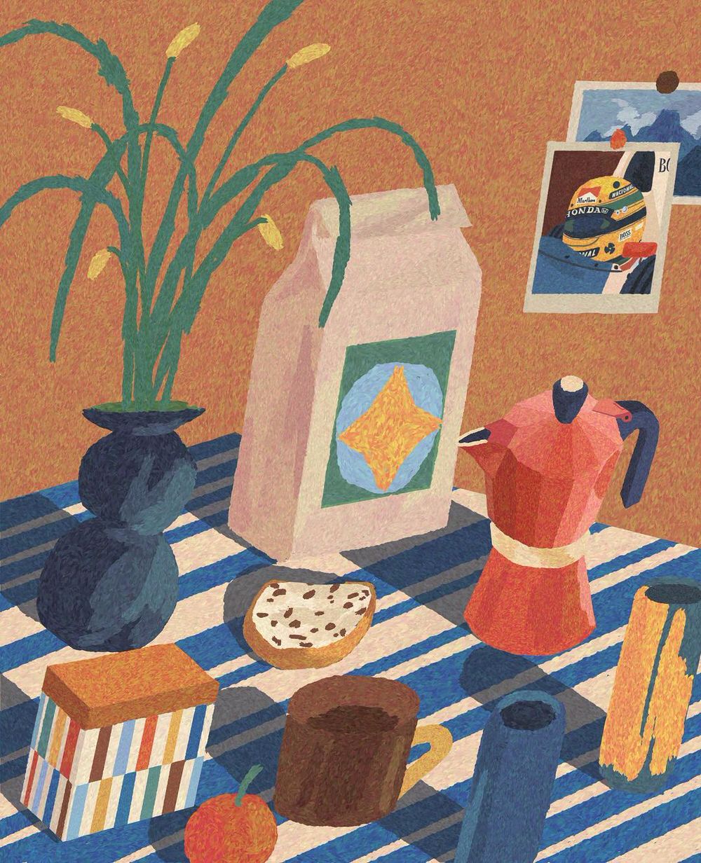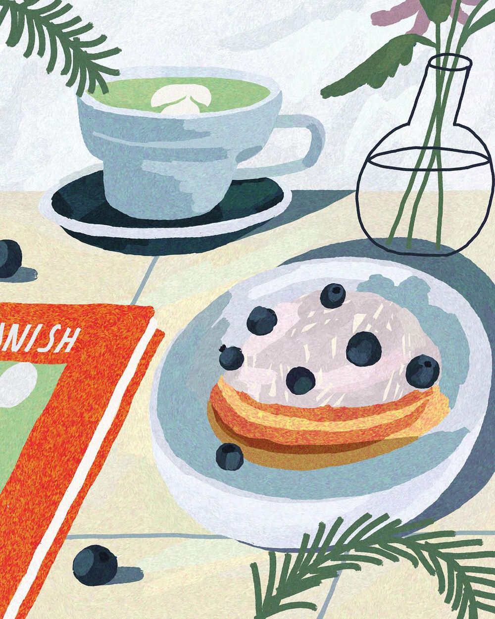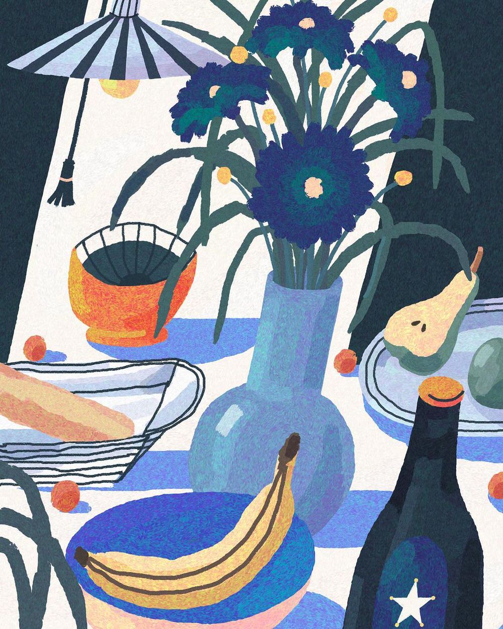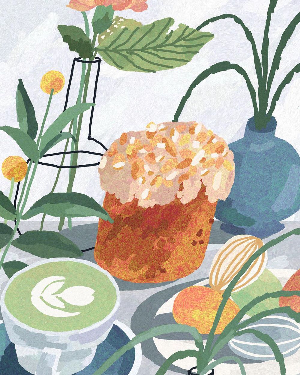 Nell’opera dell’illustratrice troviamo palette di colori tenui, pennellate digitali delicate e ampie, inclinate verso destra. E poi tavole imbandite di frutta, tazze, fiori e foglie. Ma anche piccole interpretazioni personali ispirate al mondo del cinema, della musica e talvolta dello sport, sempre caratterizzate dalla pacatezza dei tratti. Seguitela su Instagram.