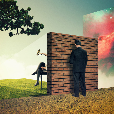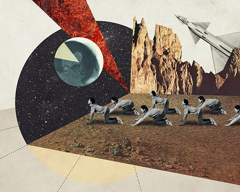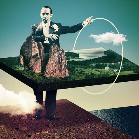 Prima di essere illustratore, Julien Pacaud è stato in ordine: astrofisico, giocatore di biliardo, ipnotizzatore e insegnante di esperanto. Tra un lavoro e l’altro si occupa di creare collage di immagini con l’intento di renderle molto più che surreali, spiazzando l’occhio e confondendo il visitatore. Magnifique!
