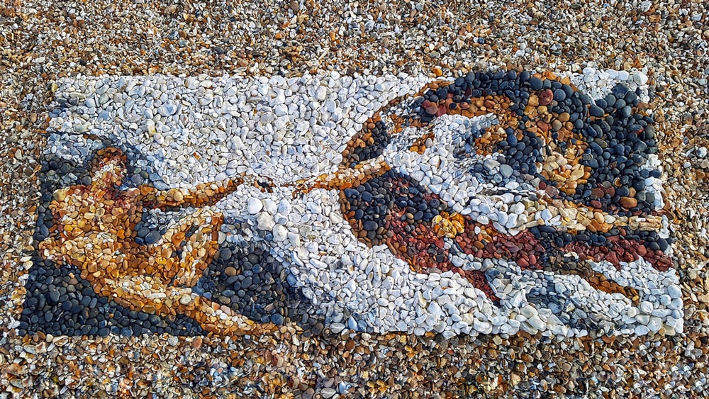 Bateman è un illustratore, pittore, scultore e land artist che ama utilizzare materiali naturali e ultimamente si sta dedicando alla realizzazione di opere temporanee fatte di pietre e ciottoli colorati di grande effetto che gli sono valse svariate pubblicazioni e menzioni da parte della stampa. “La mia arte è effimera, lascia solo delle tracce”, afferma l’artista, ed è forse questo uno dei motivi per cui riscuote tanta ammirazione. Le opere hanno dimensioni variabili da uno a dieci metri quadrati e possono richiedere settimane di lavoro e una concentrazione assoluta, quasi una meditazione.