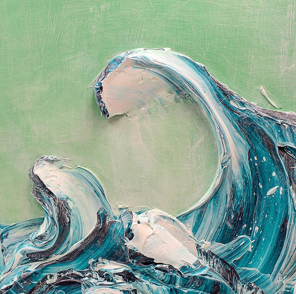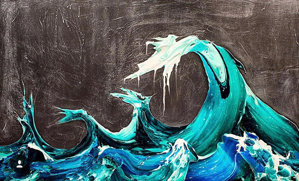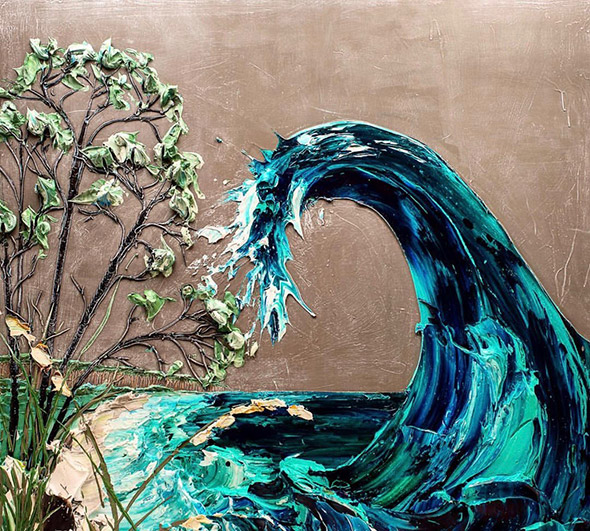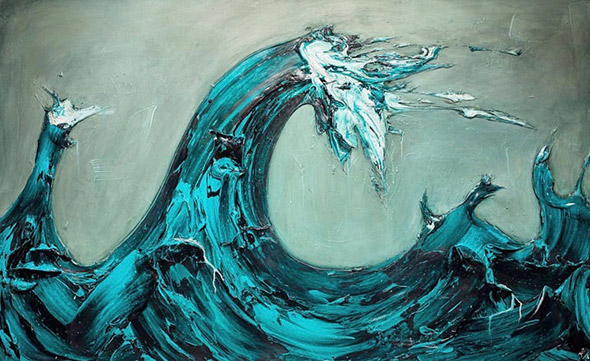 Pesanti spatolate di colore ad olio vanno a comporre mari in tempesta, paesaggi tropicali e scenari bucolici. La tecnica di Justin Gaffrey è sicuramente originale e riesce a conferire ai dipinti un’energia cinetica in grado di catapultare l’osservatore all’interno dell’opera.