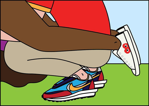Divertente e anche un po’ feticista è la serie SneakerSutra di Andrea Locci, che utilizza il pretesto di inquadrare le estremità calzate per far immaginare il resto.