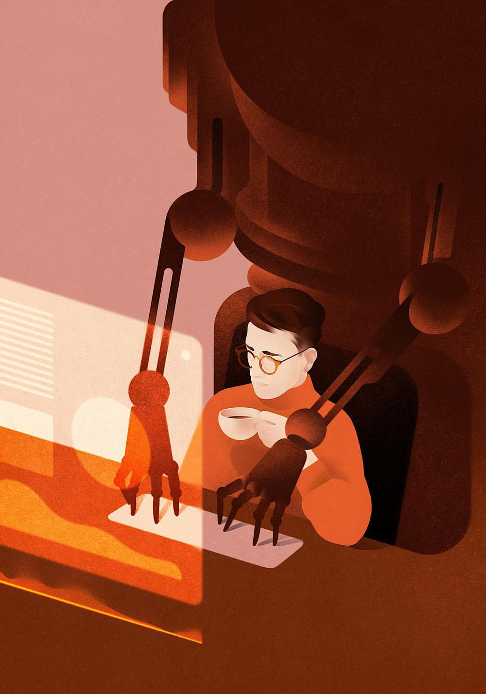 Karolis Strautniekas è un acuto osservatore della realtà e un abilissimo disegnatore. Quando l’abbiamo conosciuto nel 2014 il suo stile aveva già tutte le caratteristiche di oggi: semplice e complesso, reale e irreale, serio e ironico. In questi anni l’artista ha lavorato molto per alzare il grado di realismo ed imparare a sfruttare al massimo la fotografia, che conferisce profondità e drammaticità alle sue illustrazioni.