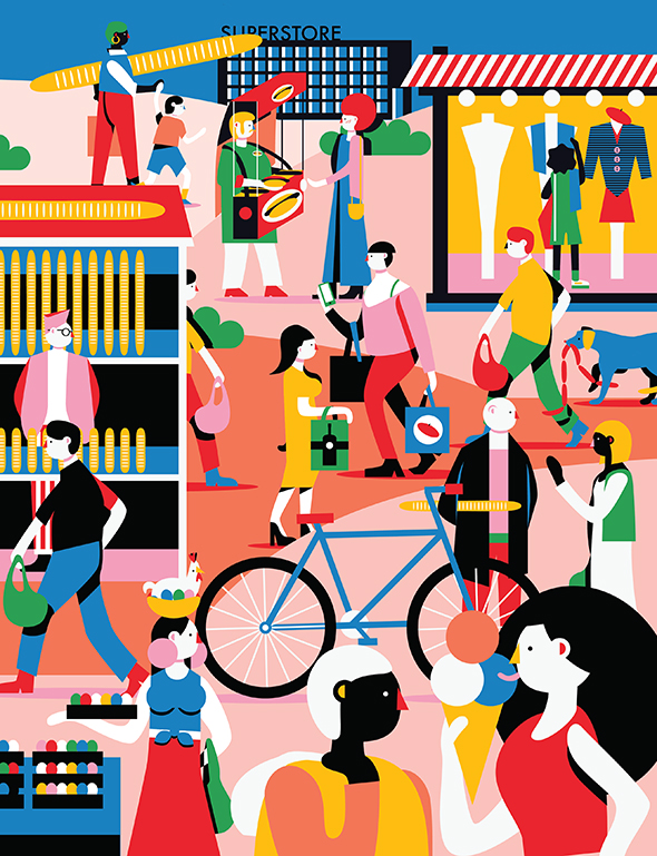 Italo-svedese, originaria di Brussels, ha vissuto a Stoccolma, si è diplomata al Central Saint Martins di Londra nel 2014, vive a Parigi, ma pensa già a Barcellona. La giovane Caterina Kiki Ljung è un’alchimia anche nello stile delle sue illustrazioni. Minimali e coloratissime le sue composizioni colpiscono per la sintesi, anche quando sono ricche di dettagli, riuscendo a portare l’attenzione là dove è importante che cada lo sguardo.
