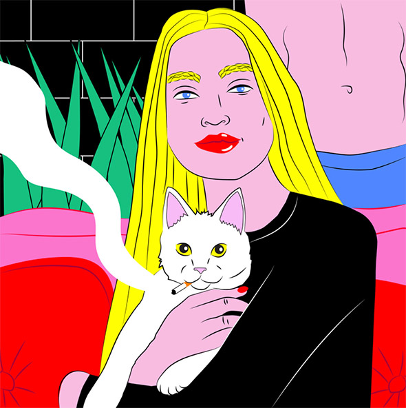 Non c’è spazio per i buoni sentimenti nel mondo immaginato da Kine Andersen, in cui persino i gatti fumano sigarette e si sbronzano.