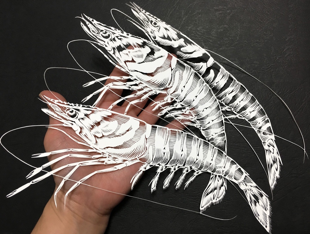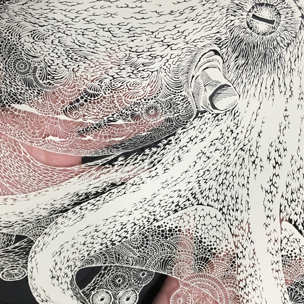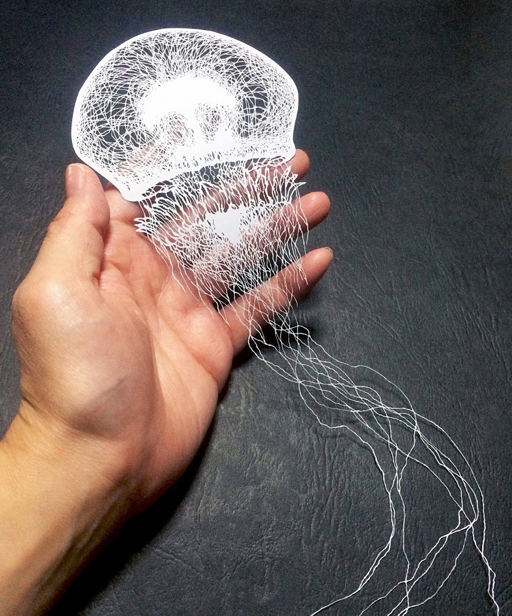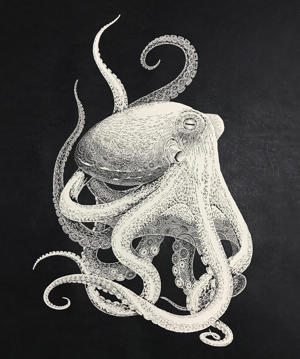 Occorrono dedizione, pazienza e precisione. L’intaglio del polpo, ad esempio, ha richiesto due mesi di lavoro. Bilanciando con estrema cura lo spessore degli spazi e delle linee l’artista riesce a creare un effetto tridimensionale, una peculiarità che la distingue dagli altri artisti che utilizzano la stessa tecnica.