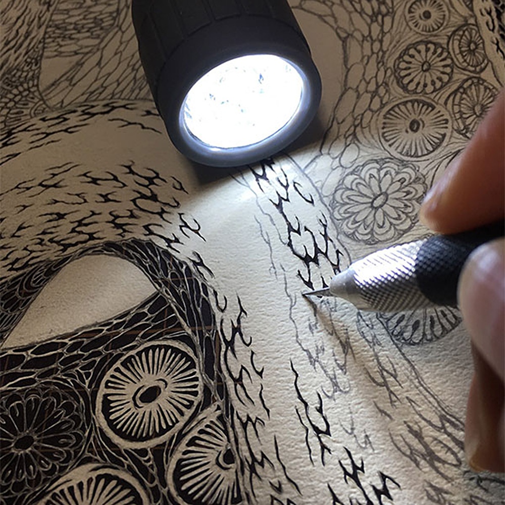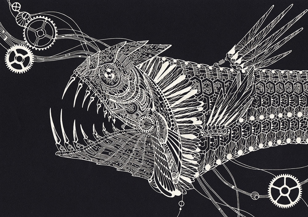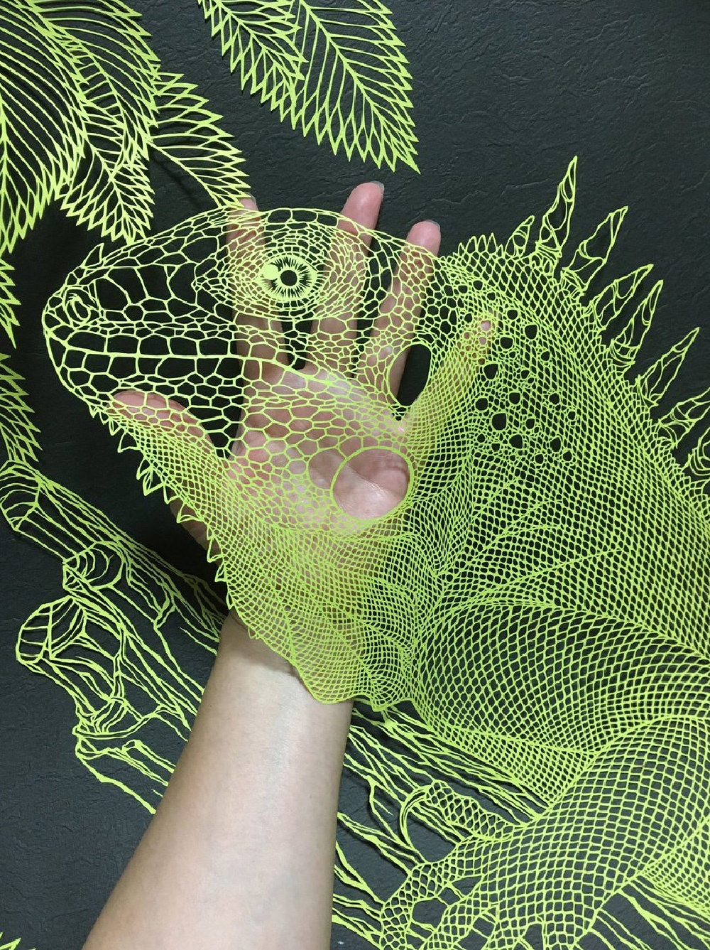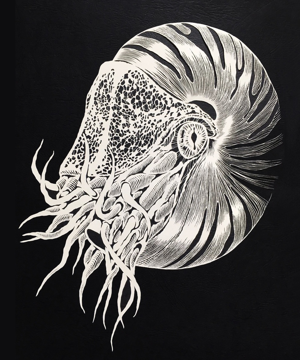 Occorrono dedizione, pazienza e precisione. L’intaglio del polpo, ad esempio, ha richiesto due mesi di lavoro. Bilanciando con estrema cura lo spessore degli spazi e delle linee l’artista riesce a creare un effetto tridimensionale, una peculiarità che la distingue dagli altri artisti che utilizzano la stessa tecnica.