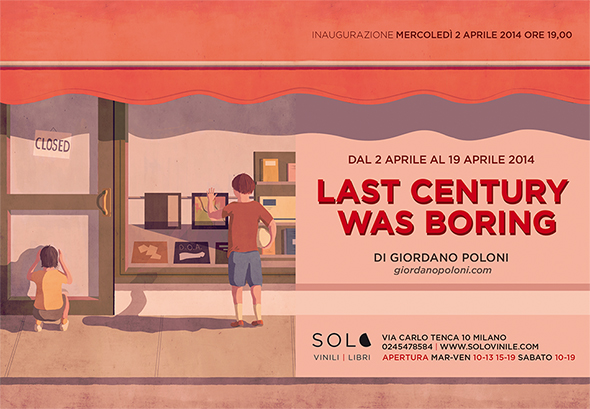 Avete tempo fino al 19 aprile per visitare “Last Century Was Boring” (presso SOLO vinili in via Carlo Tenca 10 a Milano) mostra che raccoglie il meglio dei lavori di Giordano Poloni, uno dei nomi più interessanti nel panorama dell’illustrazione italiano. Lo abbiamo intervistato qualche mese fa proprio qui su PICAME e lo ritroveremo martedì 8 aprile all’edizione 2014 di BACK2BACK.