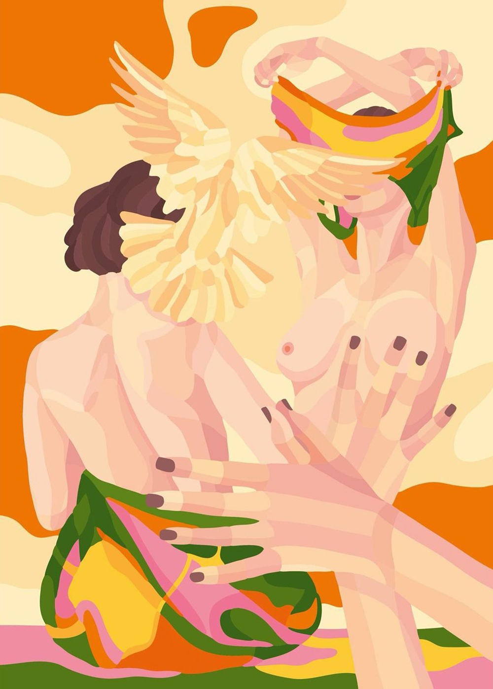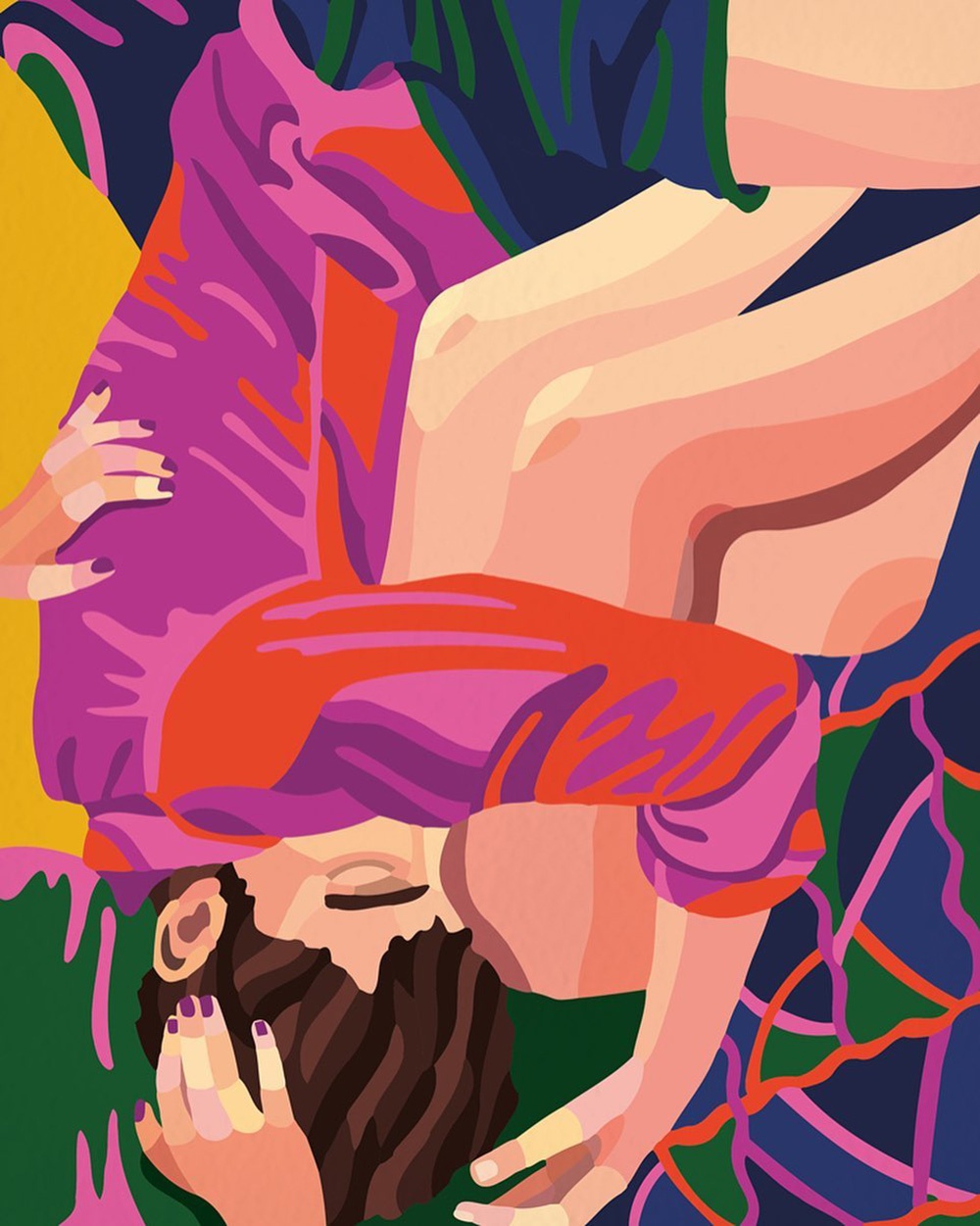 Nelle sue illustrazioni non ci sono linee di demarcazione o confini ben definiti, ogni soggetto interagisce con lo spazio che lo circonda e tutto si mescola e trova allo stesso tempo una sua continuità. Un po’ come accade anche nella vita, l’illustratrice e graphic designer francese Lèa Taillefert decide di non rinchiudersi all’interno di schemi rigidi ma gioca con i bordi esaltando la contaminazione tra le forme che, accostate le une alle altre come pezzi di un puzzle, conferiscono profondità ai soggetti rappresentati.