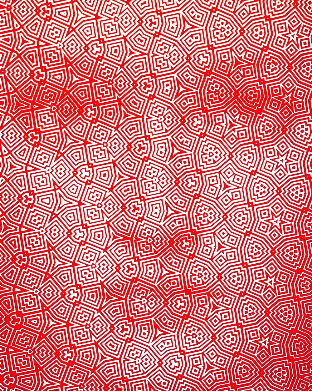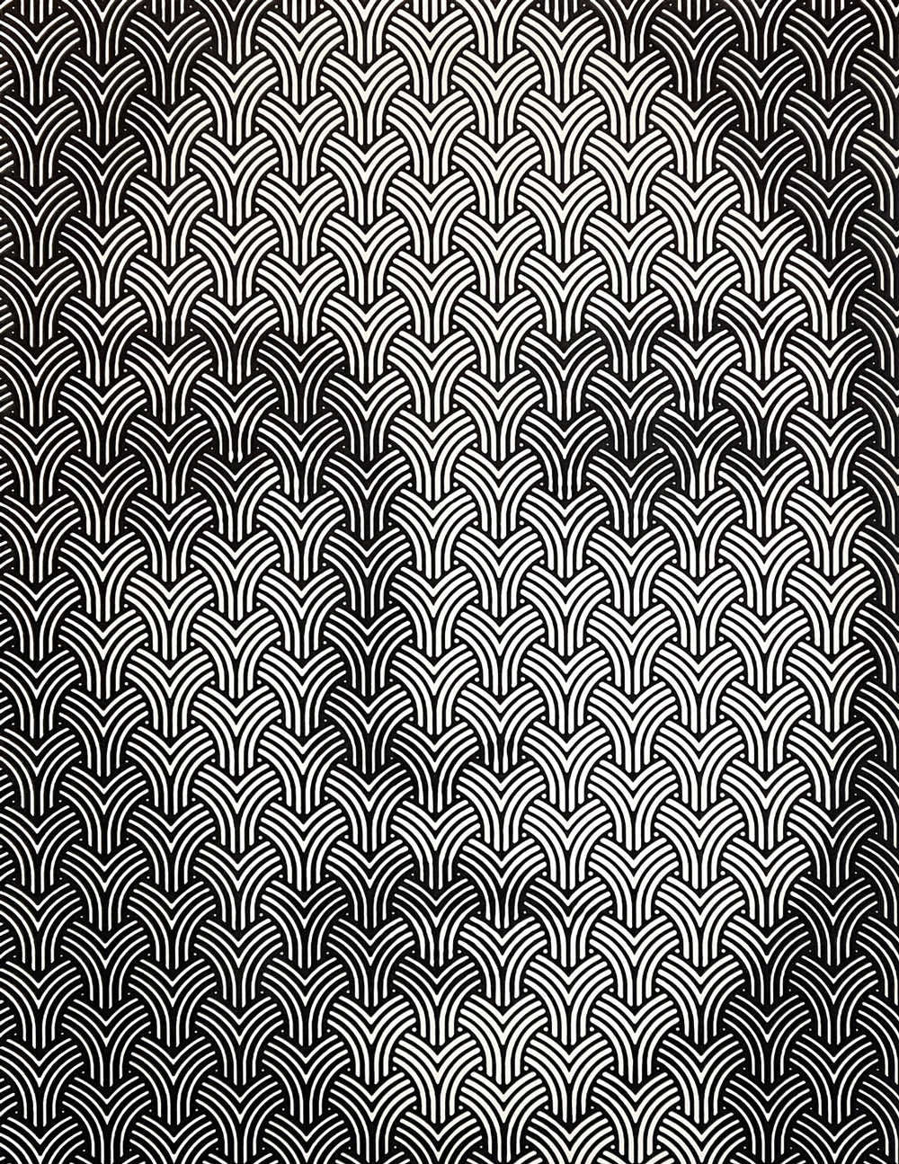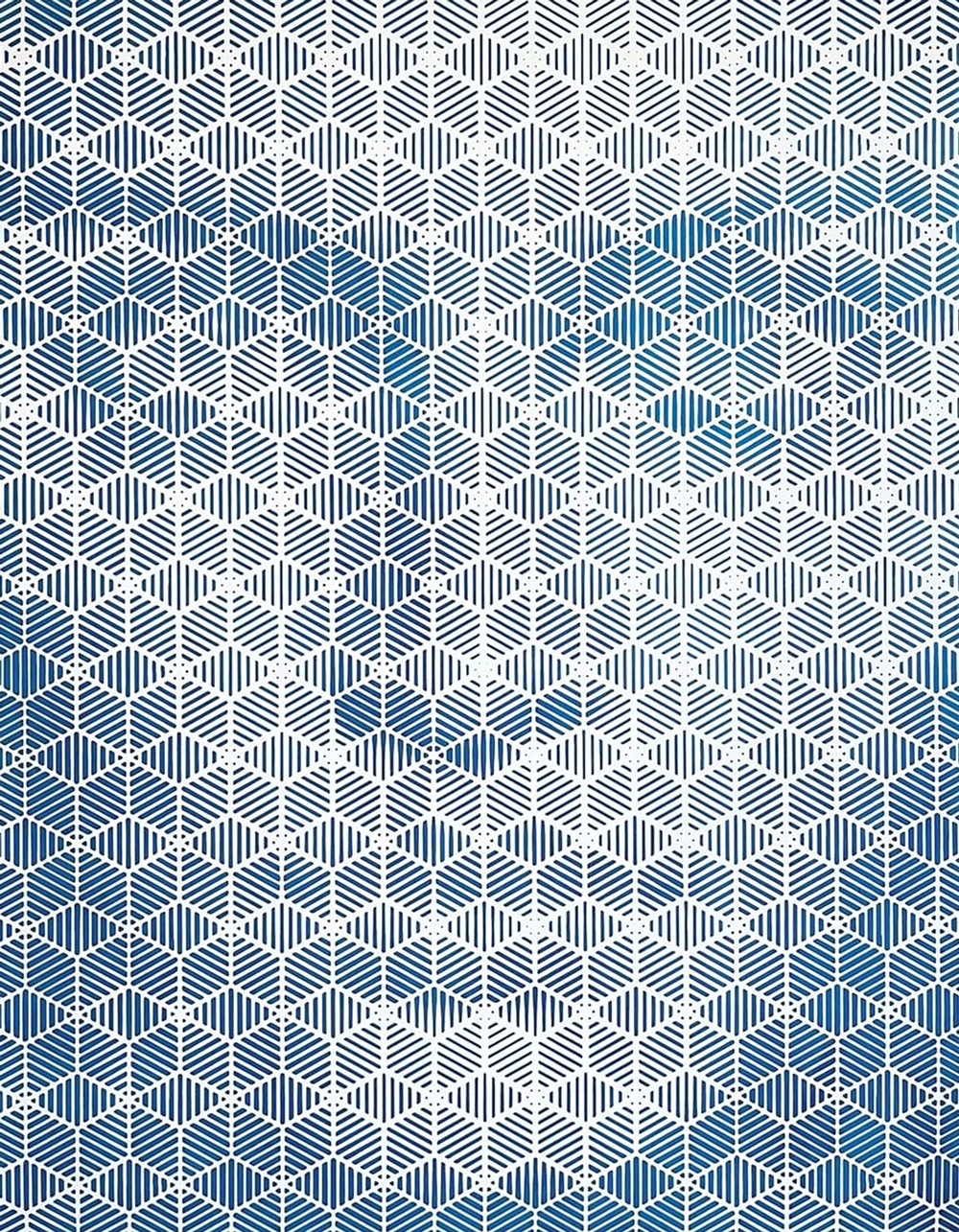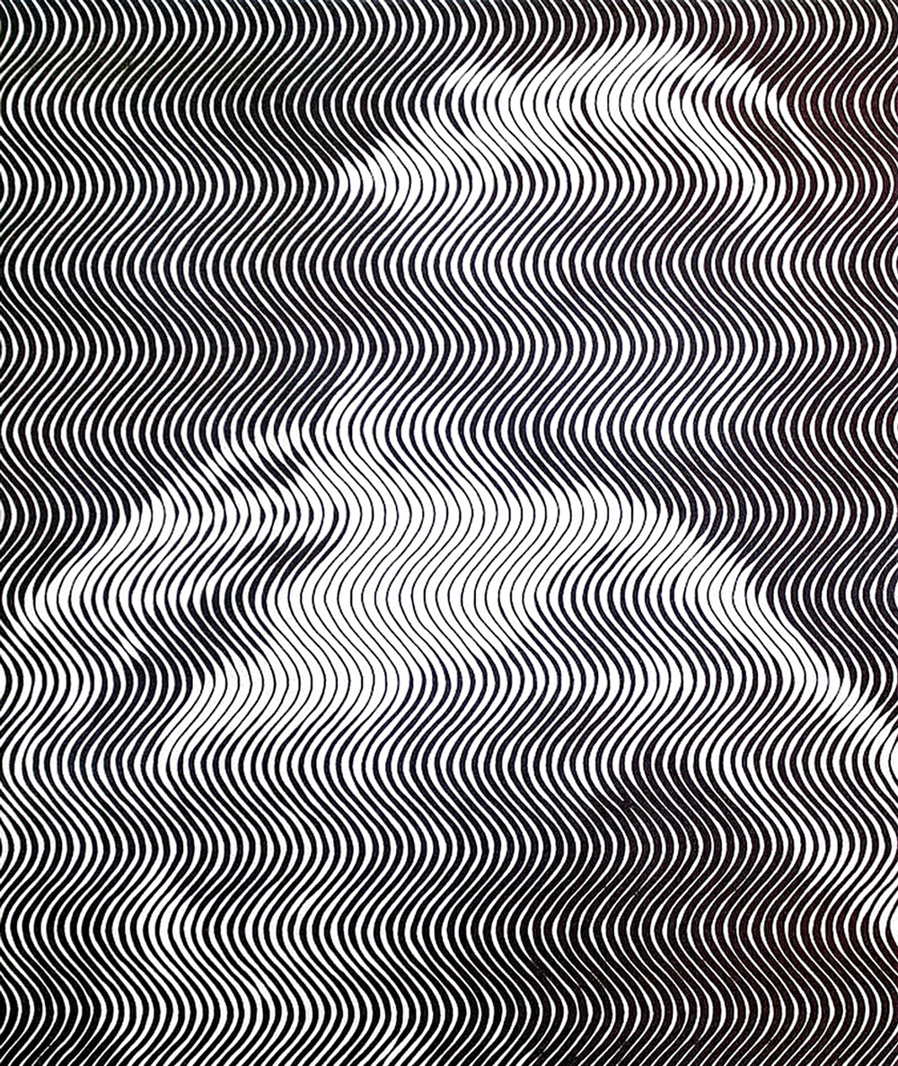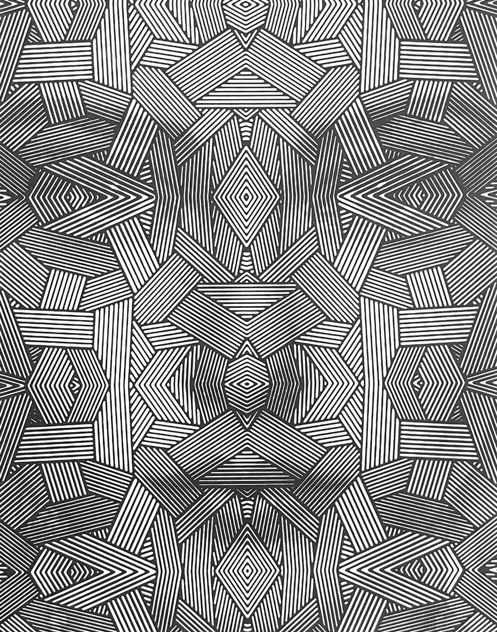 Per godere appieno delle sue opere, che emergono da un fitto groviglio di linee e forme geometriche, è necessario allontanarsi un po’ dallo schermo