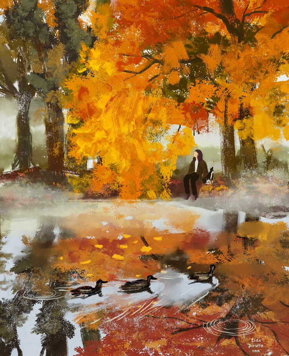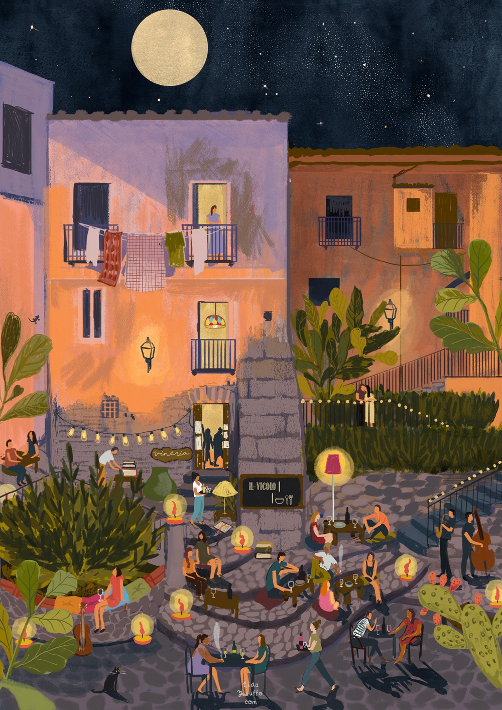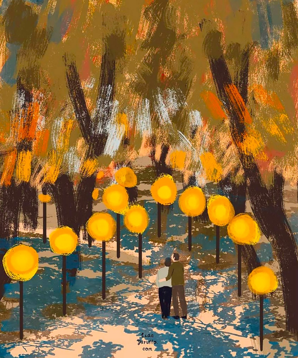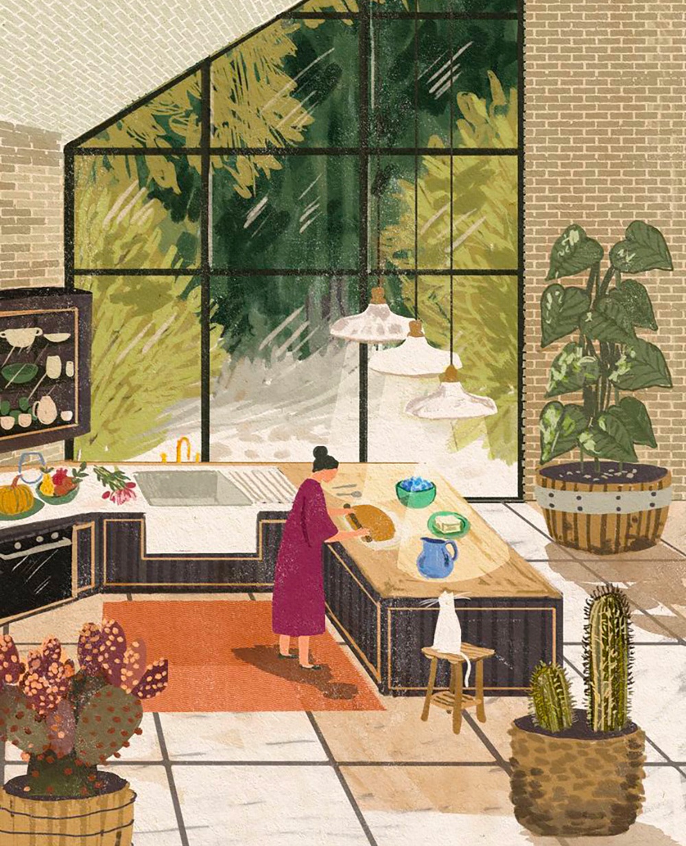Le tavole sono una terapia verde, un invito a entrare per respirare a pieni polmoni e perderci nelle forme dal tocco impressionista che sembrano vibrare nell’aria. Per realizzarle, Lida utilizza sia tecniche digitali che tradizionali come l’acquerello, i pastelli a olio e la china. I lavori che ha realizzato per l’editoria sono comparsi soprattutto su riviste inglesi come Elle Decoration UK, ma ha lavorato anche per case editrici italiane di narrativa infantile e per eventi e progetti indipendenti. Lo scorso novembre ha preso parte al progetto Il tempo sospeso di Viterbo con un’illustrazione che sottolinea l’importanza di ristabilire un equilibro tra l’uomo e l’ambiente. Conosciamola meglio in questa breve intervista.