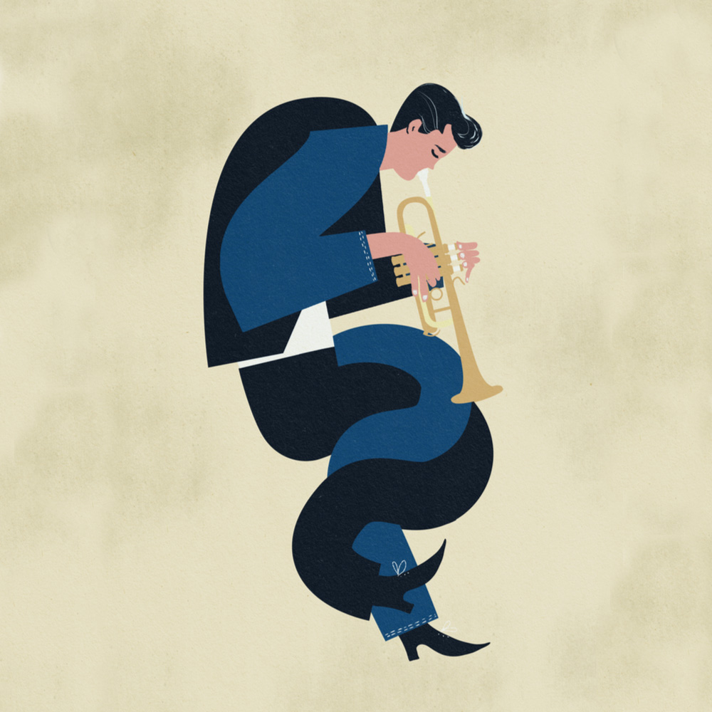 Illustrazione per il manifesto dei concerti e la copertina dell’album “Tempo di Chet” di Paolo Fresu e Marco Bardoscia.
