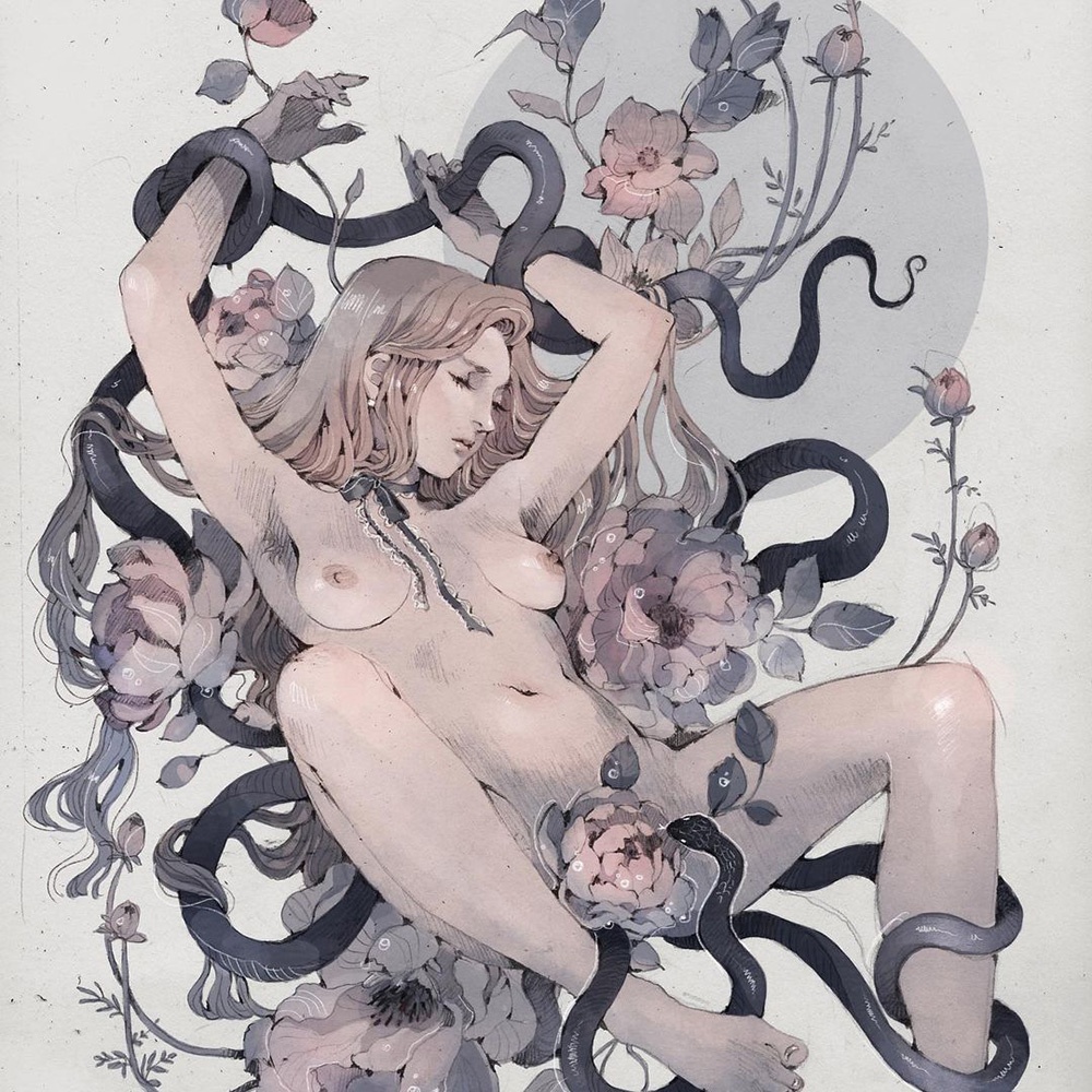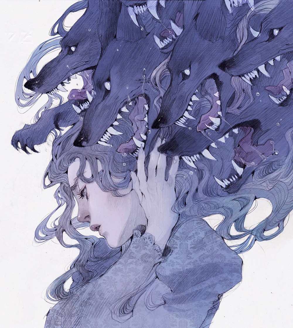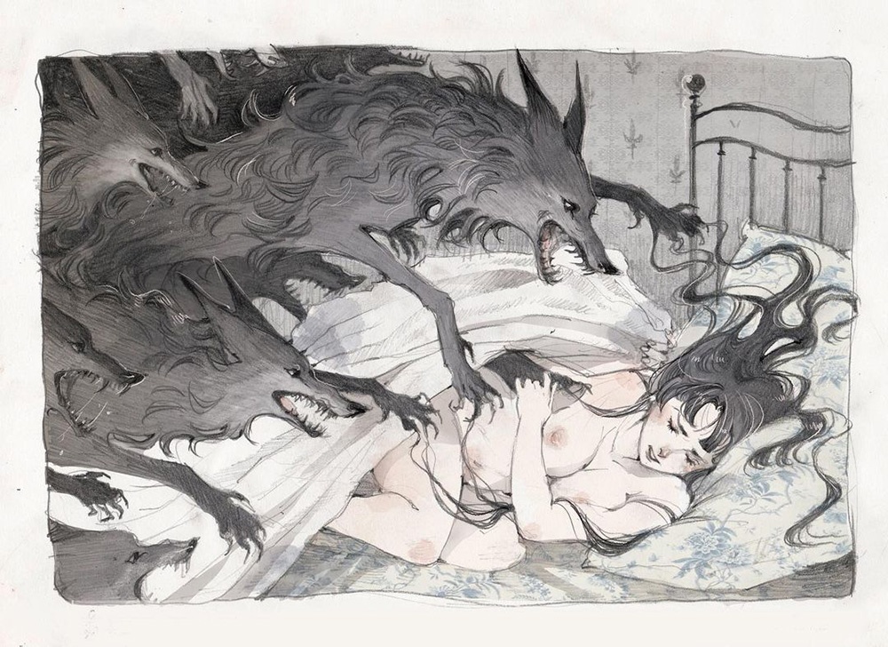 Sarebbe stato altrimenti impossibile farmi avvicinare alle atmosfere horror di cui grondano queste graphic novels, se non per la sublime bellezza di questi disegni. Così, esattamente come in una fiaba gotica, mi sono immersa nella ricerca dello sconosciuto autore, giù a perdifiato nella tana del coniglio, link dopo link, immaginandolo per assonanza nord europeo, forse anglosassone, quasi certamente russo.