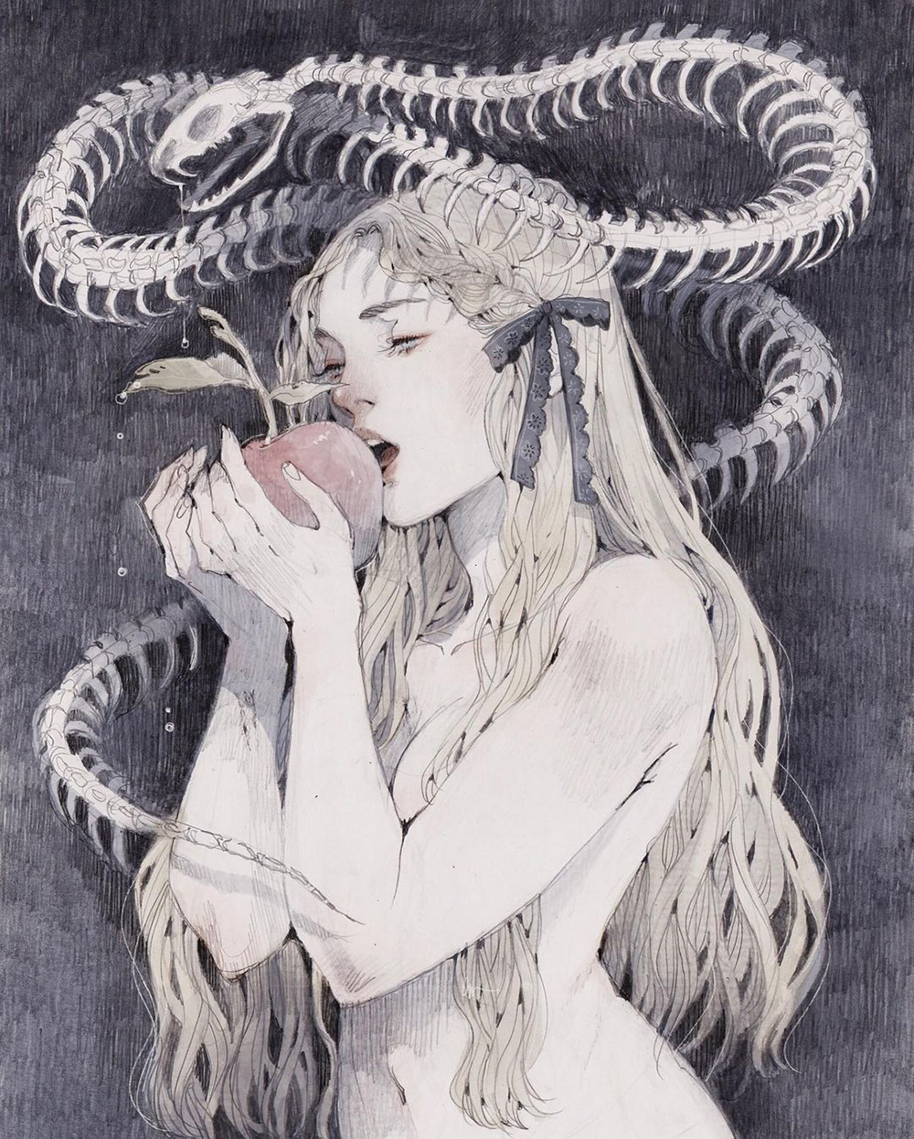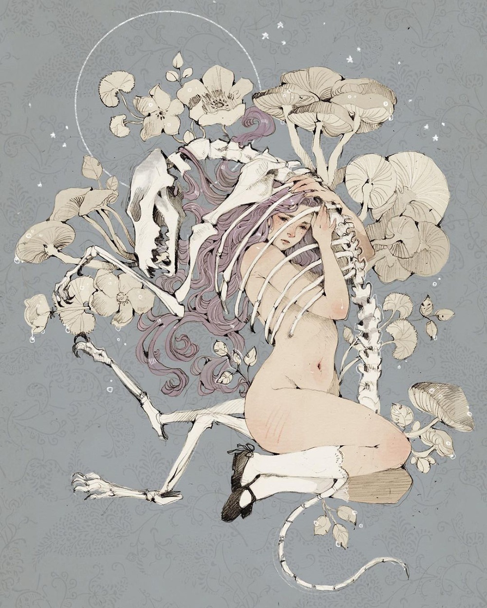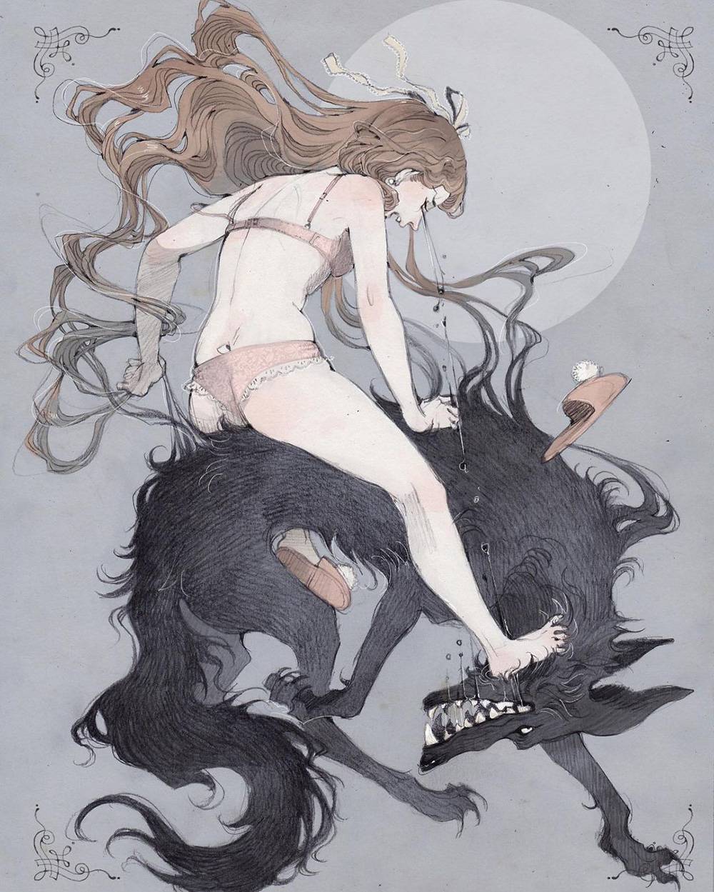 Sarebbe stato altrimenti impossibile farmi avvicinare alle atmosfere horror di cui grondano queste graphic novels, se non per la sublime bellezza di questi disegni. Così, esattamente come in una fiaba gotica, mi sono immersa nella ricerca dello sconosciuto autore, giù a perdifiato nella tana del coniglio, link dopo link, immaginandolo per assonanza nord europeo, forse anglosassone, quasi certamente russo.