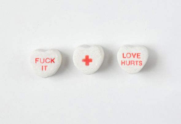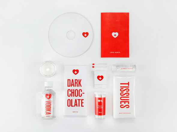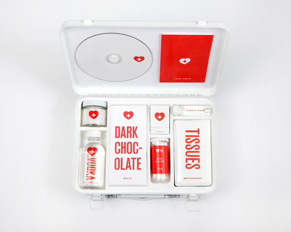 Un kit di pronto soccorso per cuori spezzati, ideato dalla designer newyorkese Melanie Chernock, che afferma che il suo obiettivo è quello di creare opere comunicative, originali e sorprendenti. Love Hurts contiene i prodotti essenziali per superare una turbolenta rottura, cioè cioccolato nero, vodka, sapone di bagno, candele, caramelle a forma di cuore, un CD e se tutto questo fallisce, fazzoletti di carta.