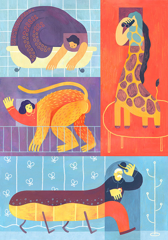 Da piccola sognavo di diventare come Monet. Adoravo i colori, le luci e le pennellate dei suoi quadri. Nel settore dell’illustrazione invece, i primi punti di riferimento sono stati Leo Lionni e Noma Bar. Mi ha sempre appassionato la pittura, ma ho cominciato a interessarmi anche ad un linguaggio più grafico. Così ora, quando realizzo un’illustrazione, cerco di far dialogare questi due aspetti. Di fronte al foglio bianco, più che cercare l’ispirazione, mi pongo quasi sempre lo stesso obiettivo: quello di esprimere un messaggio, giocando con le forme e i colori della realtà.