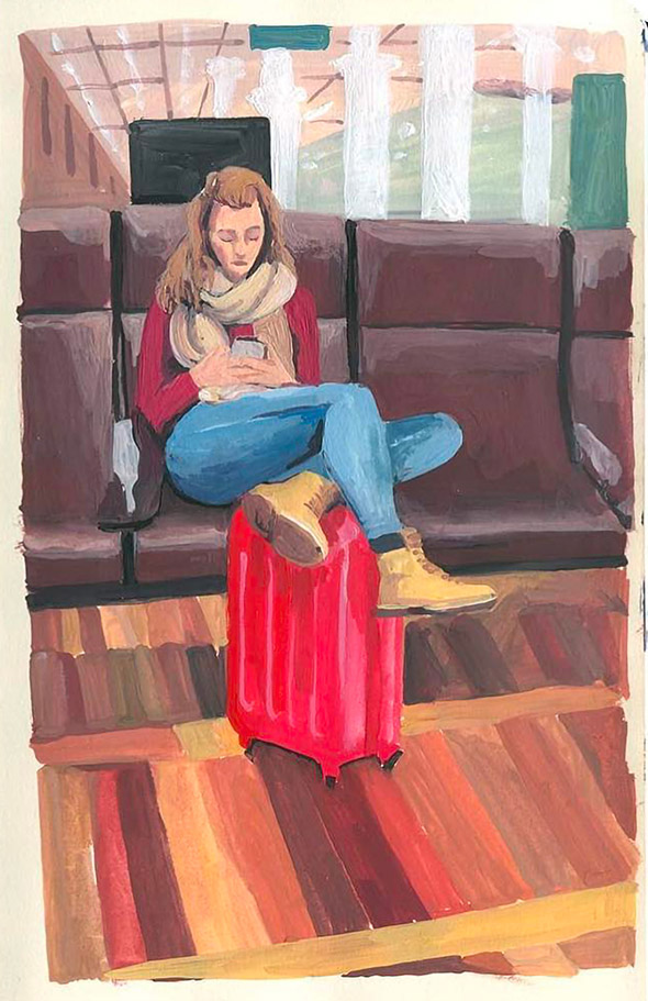 Nonostante molte delle sue immagini siano fantasiose Lucia è molto attenta alla realtà che la circonda e sa cogliere quello che il grande fotografo Henri Cartier-Bresson definiva l’attimo decisivo. Lo dimostrano i suoi sketch “impressionisti” che meritano un apprezzamento particolare: sono persone comuni, colte dal vivo in semplici atteggiamenti, che la sua mano felice sa trasformare in personaggi ricchi di espressività. Li ritroviamo anche nell’header animalier che Lucia ha realizzato per i lettori di Picame.