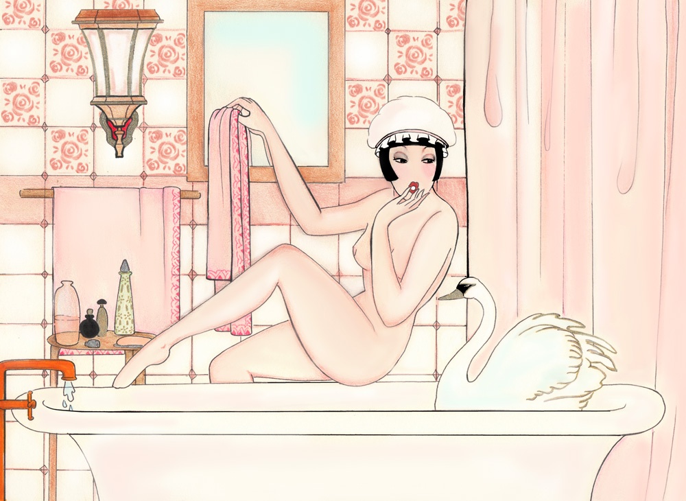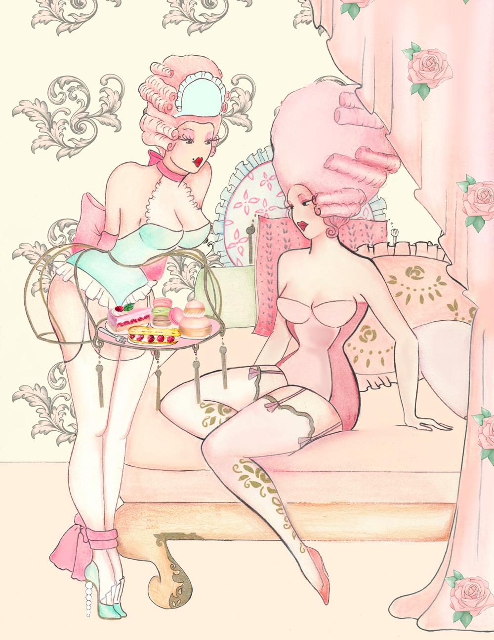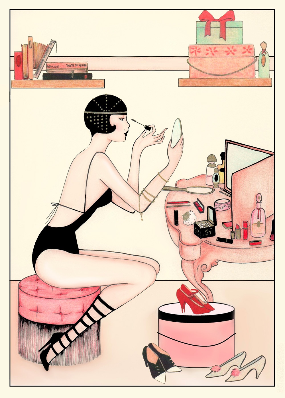 Ho sempre amato molto tutto quello che riguarda il passato. In particolare amo gli anni ’20, l’emancipazione e la trasgressione di quel periodo, soprattutto da parte delle donne, mi hanno conquistata ed ho iniziato a studiarli ossessivamente. Film, foto, artisti, ho addirittura portato una acconciatura da “maschietta“. Proprio durante un viaggio a Parigi all’inizio della mia carriera comprai una valanga di riviste La Vie Parisienne, una pubblicazione di tipo erotico, moderatamente osé, che aveva molto successo anche in America. Le donne in questa rivista sono molto moderne per l’epoca, alla moda, ironiche, sensuali, e fanno esattamente tutto quello che fanno gli uomini. La cosa che le rende ancora più gradevoli sono le ambientazioni storiche sempre diverse: preistoria, medioevo, era rococò… mi ricordano le messe in scena a teatro, con abiti ricercati e acconciature inverosimili.