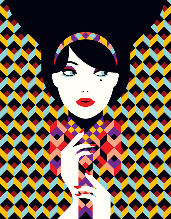 I guess these are underlying influences more than conscious ones. The way I work is very organic and for a long time I considered it very instinctive but I later realised that I was feeding of images, objects and things that please my eye on a day to day basis and that those influences somehow nurtured me and my imagination and could be found in the work I would produce later on. I am a huge fan of Bridget Riley, a keen admirer of anything Bauhaus and I love the boldness of anything 80’s, as well as the music. As for the 90’s, well, I grew up in that decade 😉 There is a very tight link between what I draw, what I wear and what I find beautiful or exciting so it’s pretty much all intertwined.