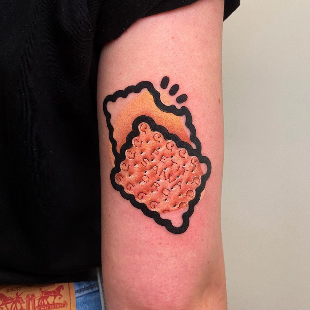 “Ho frequentato il liceo artistico e mi sono sempre interessato al mondo della grafica, dei loghi, delle icone. La semplicità dei loghi mi ha aiutato a creare il mio stile destrutturato, perché trasformare un’immagine in un logo significa semplificarla tenendo le linee base, ma facendo sì che qualunque soggetto sia ugualmente comprensibile a tutti. Non c’è mai stata una vera ricerca dietro. È nato casualmente durante una sessione di disegno per un tatuaggio commissionato da una cliente. Da lì in poi è stato tutto in discesa: lo stile ha preso sempre più piede fino a diventare il mio tratto caratteristico”