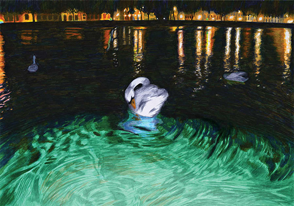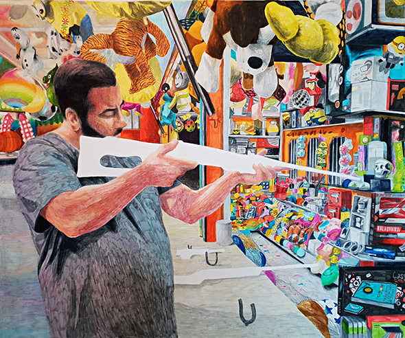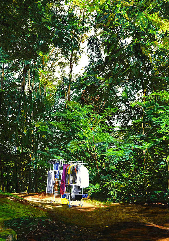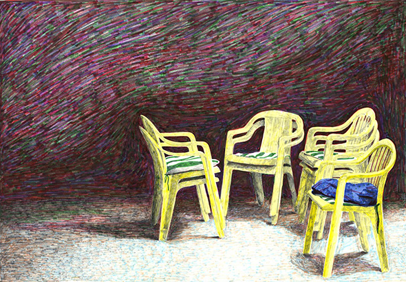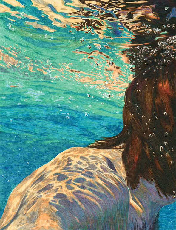 Disegni che sembrano dipinti e che dei dipinti hanno anche le grandi dimensioni. In essi i giochi di luce hanno un ruolo fondamentale nel far letteralmente brillare la tessitura cromatica. Le composizioni hanno un punto di vista e un taglio compositivo che le trasformano in visioni di magico realismo, enfatizzate dalla scelta di rappresentare attimi di semplicità e scene di vita quotidiana.