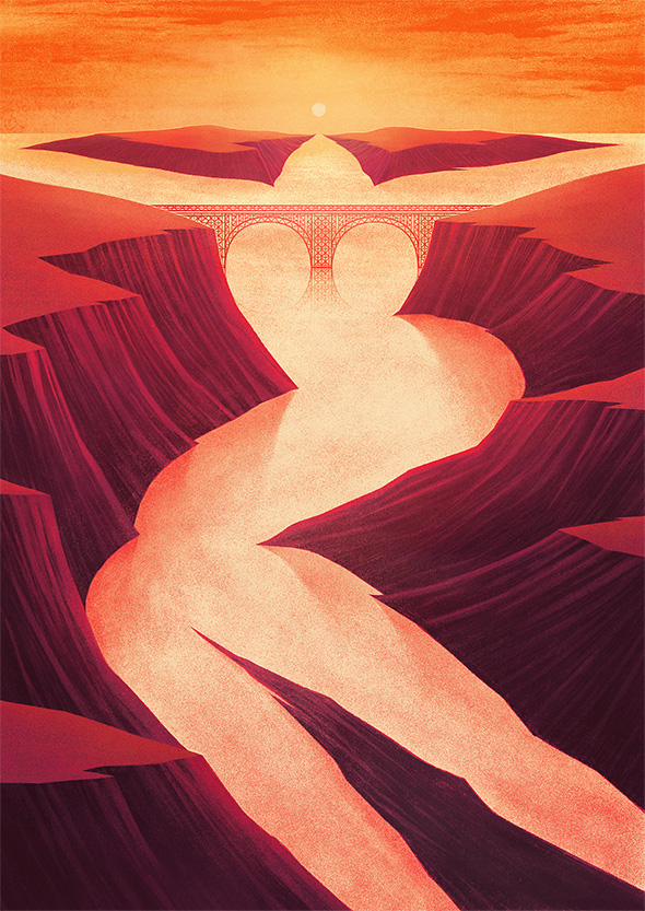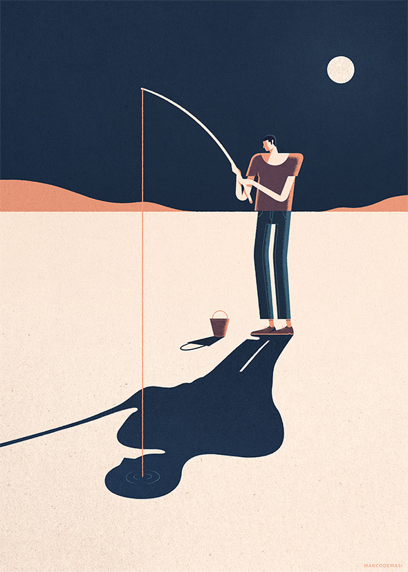 È un immaginario fatto di metafore quello di Marco De Masi, illustratore classe 1993 che vive e lavora a Lecce. Autodidatta, sta ancora sperimentando vari stili e tecniche alla ricerca di una propria identità artistica. Ama spaziare dal digitale al cartaceo, dalle forme fluide della matita a quelle geometriche del vettoriale, mescolando uno stile giocoso ed immediato ad uno più concettuale e pittorico, con particolare attenzione alla cura dei dettagli. Tra le tematiche principali di questa seconda categoria di illustrazioni c’è l’animo umano, con i suoi dilemmi e le sue contraddizioni, affrontato con un approccio quasi psicologico.