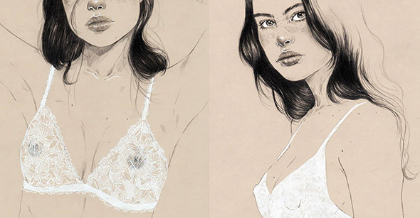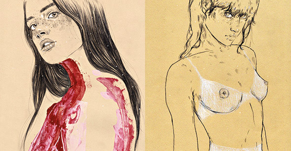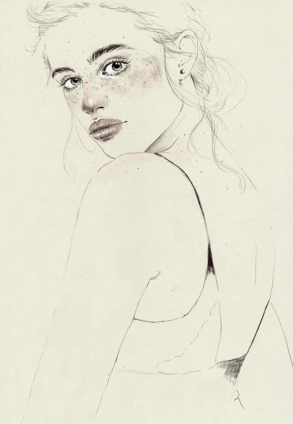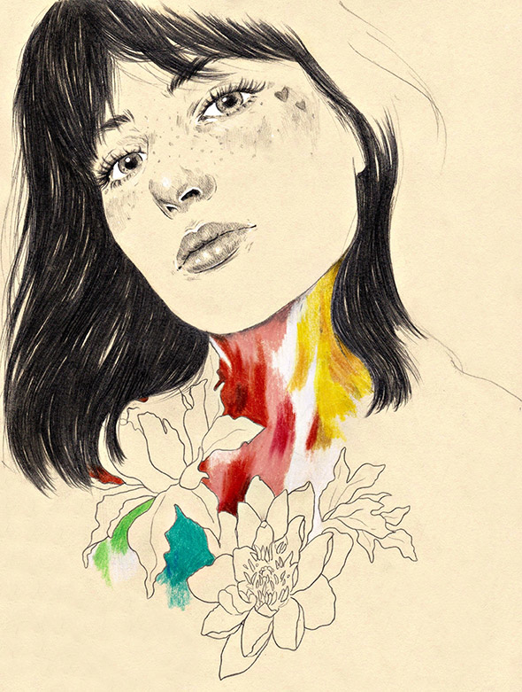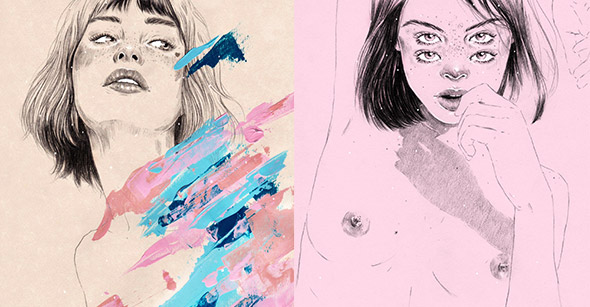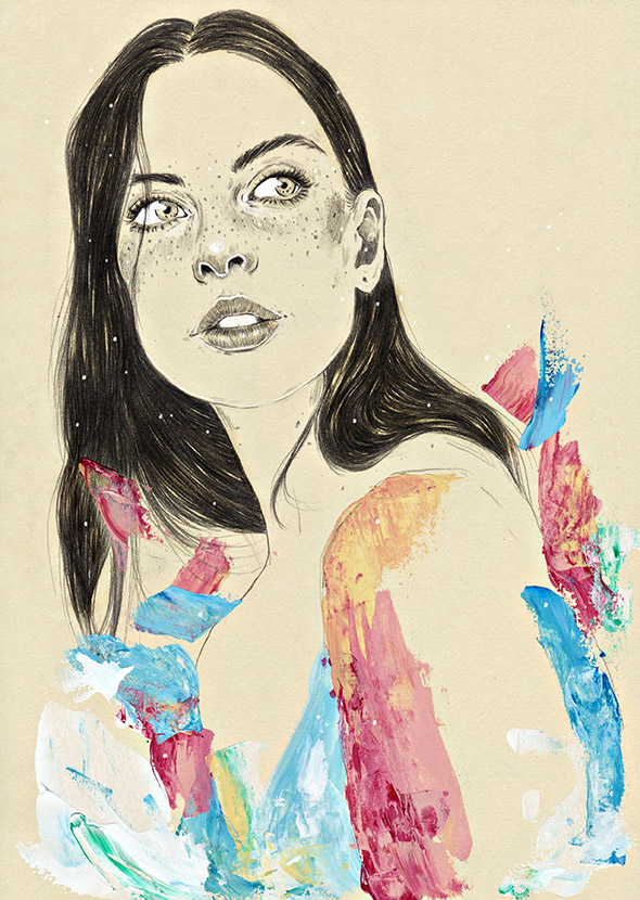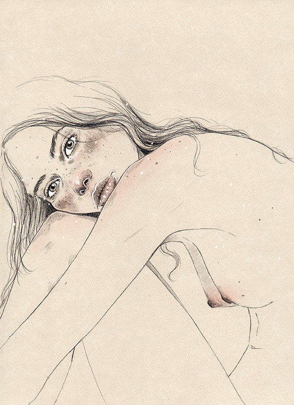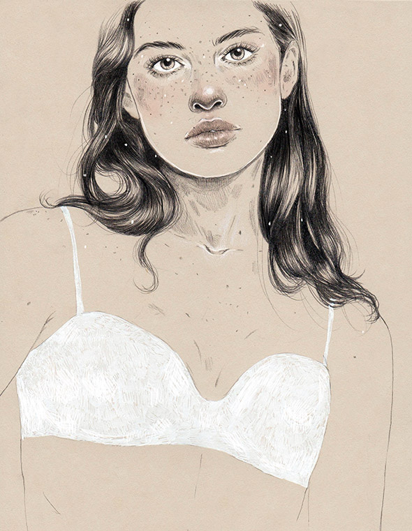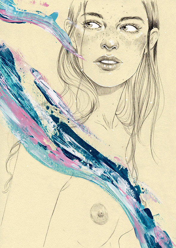 I ritratti al femminile di Marìa Ponce, giovane illustratrice spagnola, nascono dall’incontro tra sensualità, erotismo e fragilità, “ma non intesa come debolezza“, ci tiene a specificare l’autrice. Lo stile, in bilico tra realismo e surrealismo, coniuga tecniche tradizionali come disegno, incisione e pittura –apprese durante gli anni di formazione– con il digitale, utilizzato nella fase di rifinitura e finalizzazione.