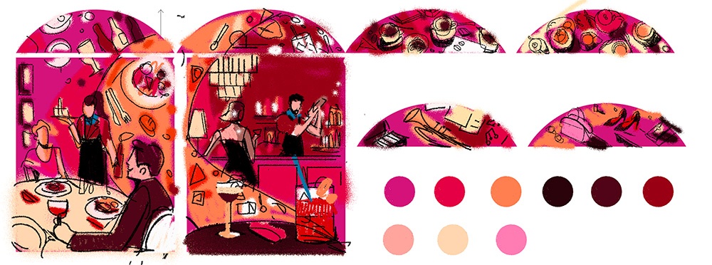 Primi bozzetti e prove colore – © Marianna Tomaselli, 2021