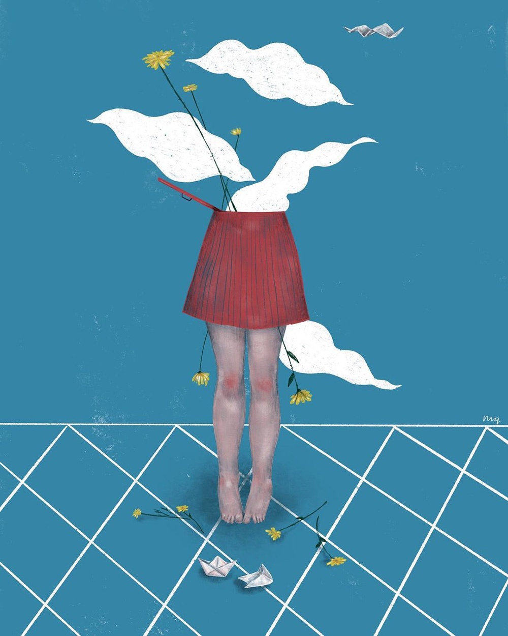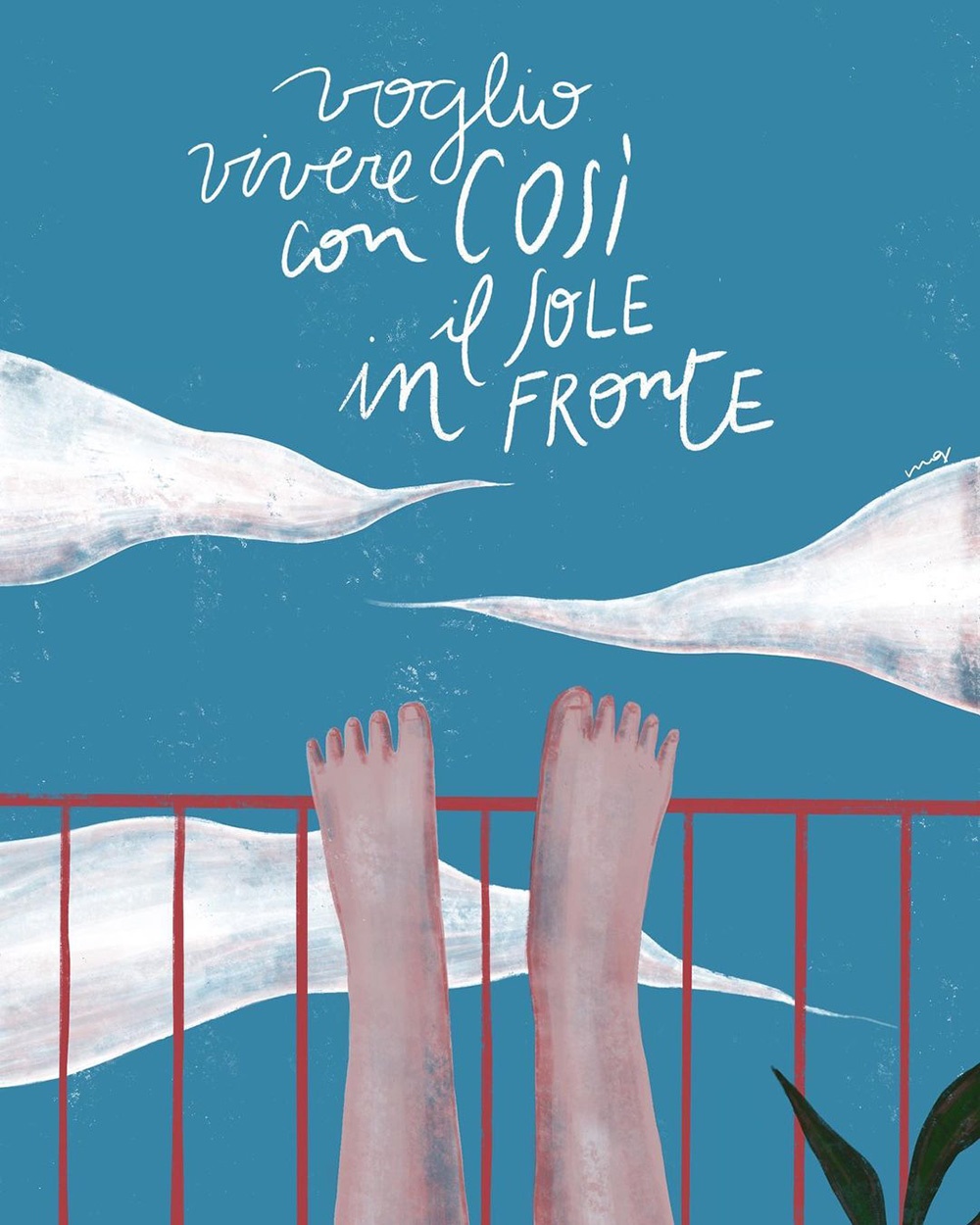 Due grandi passioni come il disegno e la lettura non possono che trovare un perfetto accordo nel linguaggio visivo di Mariateresa Quercia, che abbraccia anche le strofe di alcune delle canzoni più nostalgiche e romantiche di sempre. E allora sembra quasi di sentirlo, il suono di quelle note, o di percepire da lontano lo scroscio delle onde.